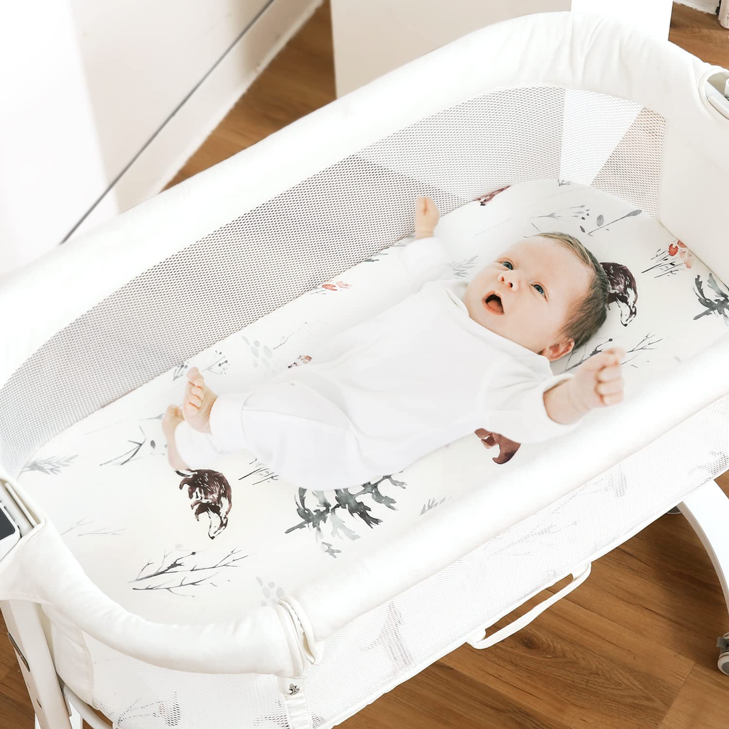 - Original Bassinet Sheets – Stretchy Ultra Soft Fitted Bassinet Sheet Set 3 Pack, Universal Fit for Bassinets Baby Cradle Moses Basket Oval Rectangle Mattress Safe and Snug, Cute Jungle Squirrels and Animals by GRSSDER