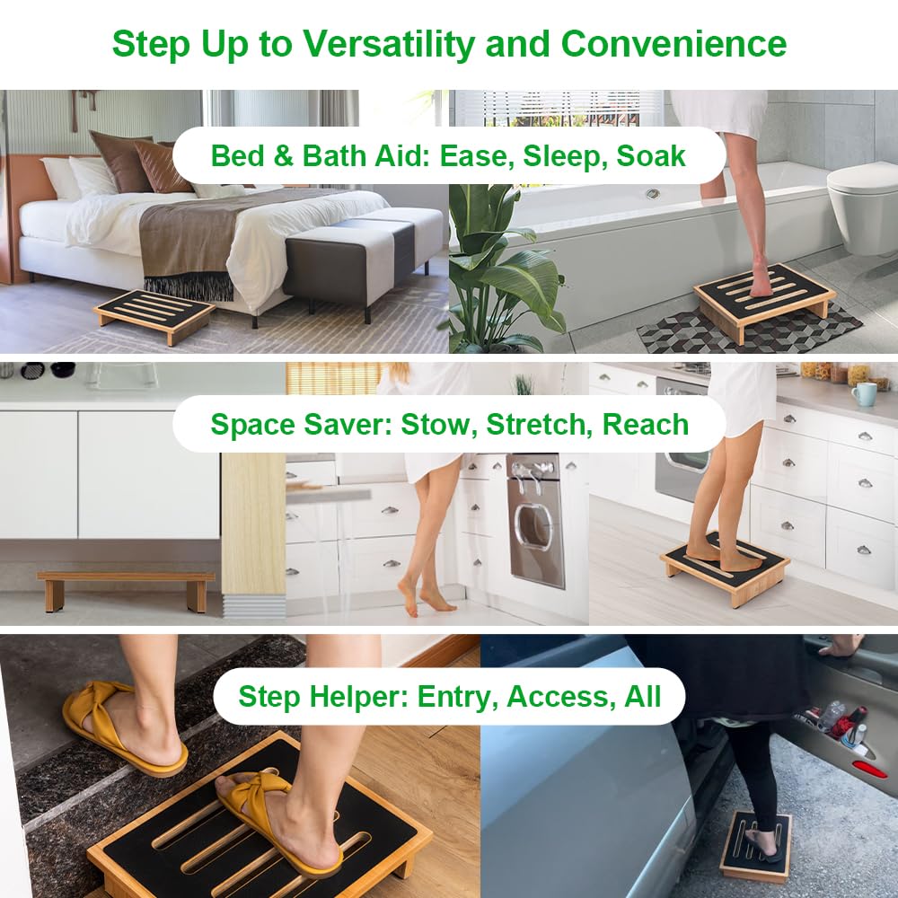 - High-Quality Wooden Step Stool, Supports Up to 400 lbs: Measuring 15 3/4 x 12 5/8 x 3 1/2, this premium wooden step stool is crafted for durability and strength, supporting up to 440 lbs. Perfect for use as a bathroom step stool, bedside aid, or car entry support, offering a safe and reliable option for daily use.
