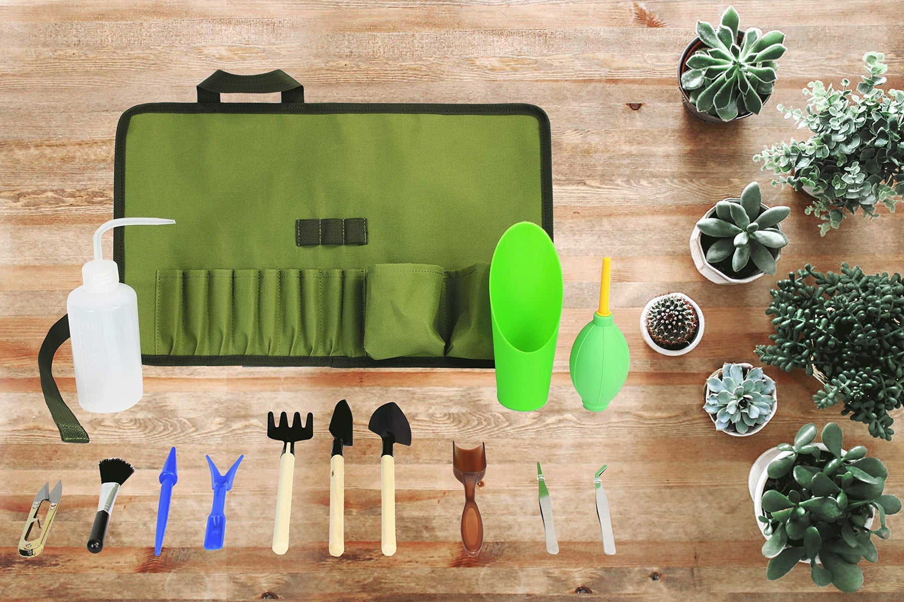 - Original Tool Sets – Succulent Kit Roll Organizer Gardening Tool Set, Terrarium Supplies Mini Succulent Garden Tool Kit, Heavy Duty Succulent Bonsai Planter Set Indoor Gardening, Fairy Zen Kit for Soil Fertilizer Seeds by CALIFORNIA PICNIC