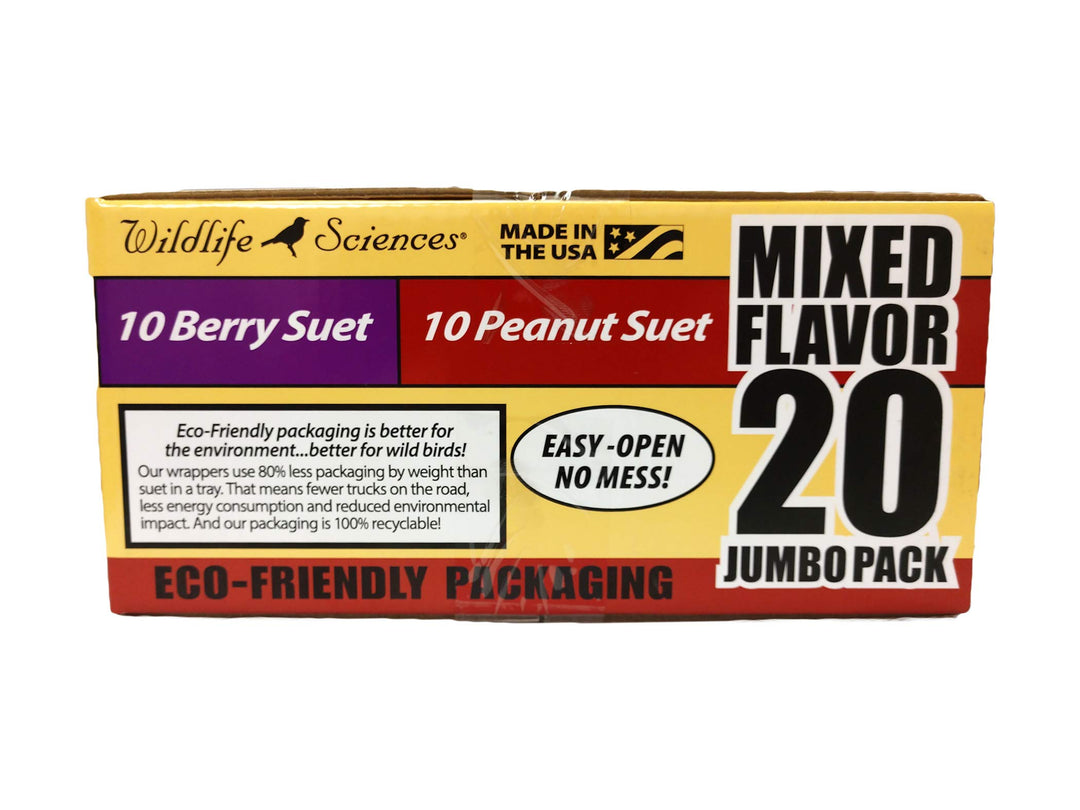 - Original Suet – Suet Cake Jumbo Mixed 20 Pack, 10 Peanut & 10 Berry 10.5 oz. Suet Cakes for Wild Birds by Wildlife Sciences