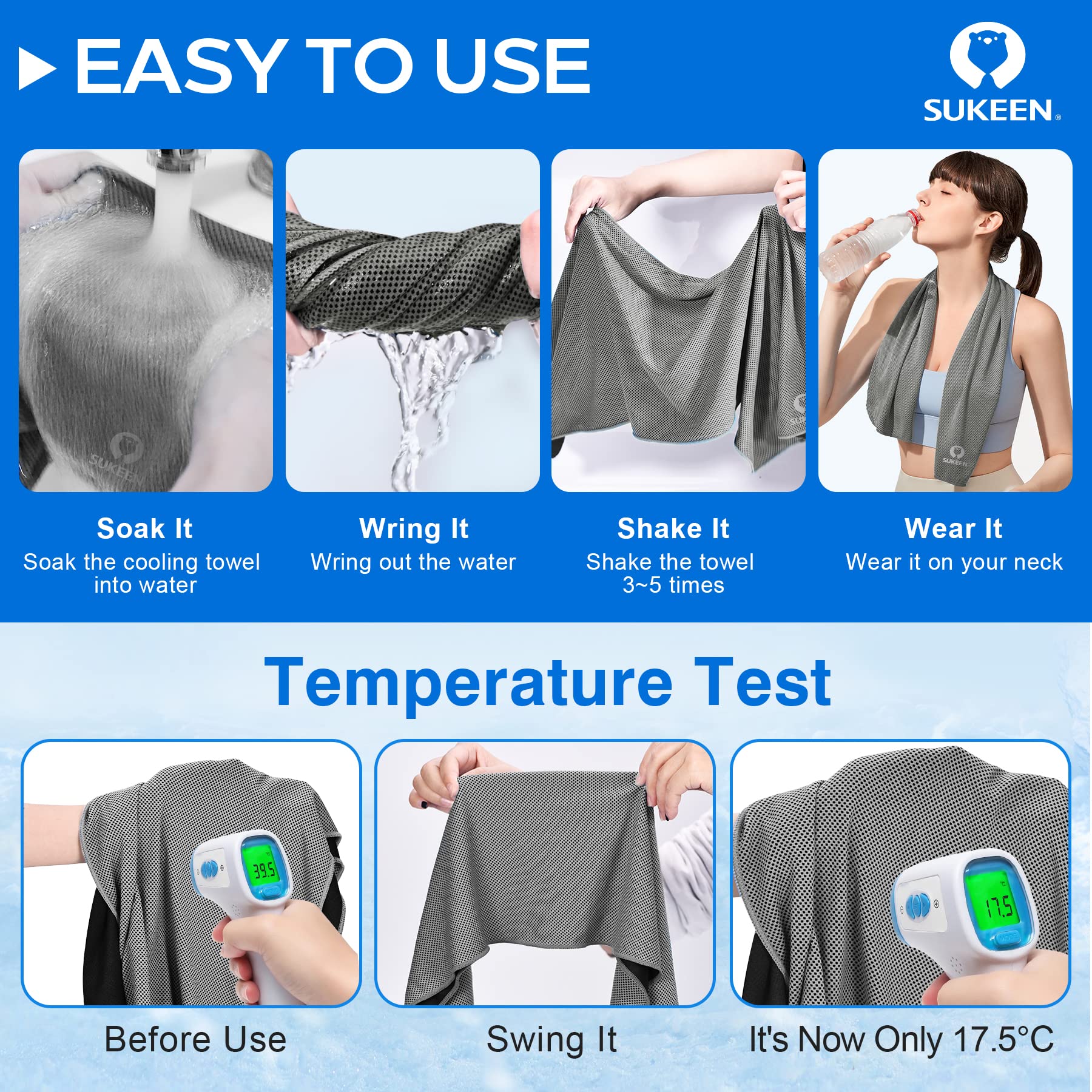 - COMFORTABLE & SKIN FRIENDLY: Sukeen cooling towels are made of high-density cooling mesh microfiber, which is silky soft, pliable and comfortable.These towels can absorb water & sweat, also let you stay dry when high intensity of exercise, achieve UPF 50 SPF.