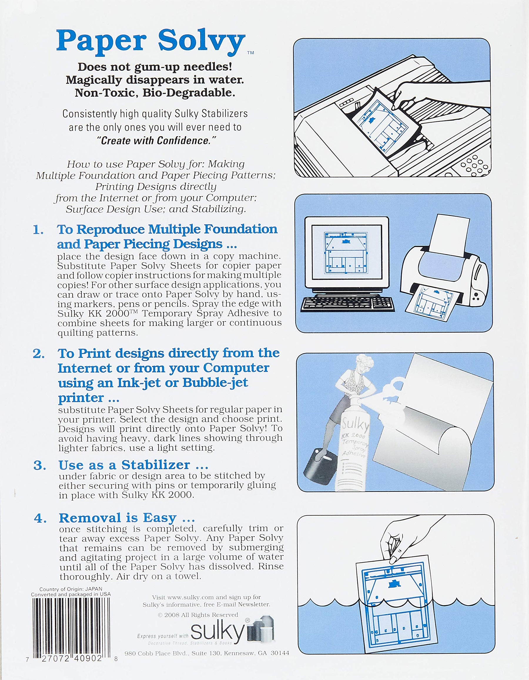 - Original Stabilizers – 409-02 Paper Solvy Water Soluble Fabric Stabilizer, 8-1/2 by 11-Inch, 12 Per Package by Sulky