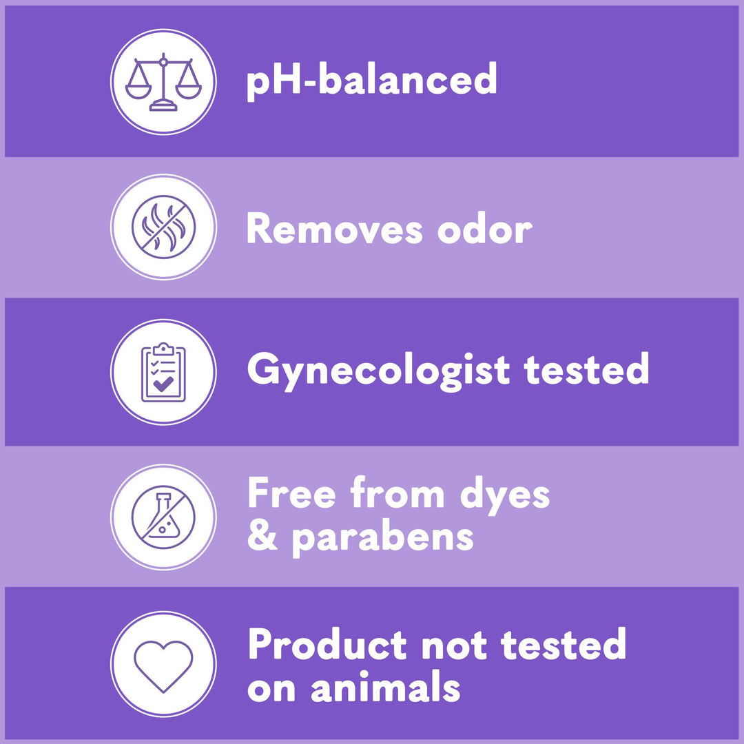 - Uniquely formulated and pH balanced to match the intimate area’s natural chemistry