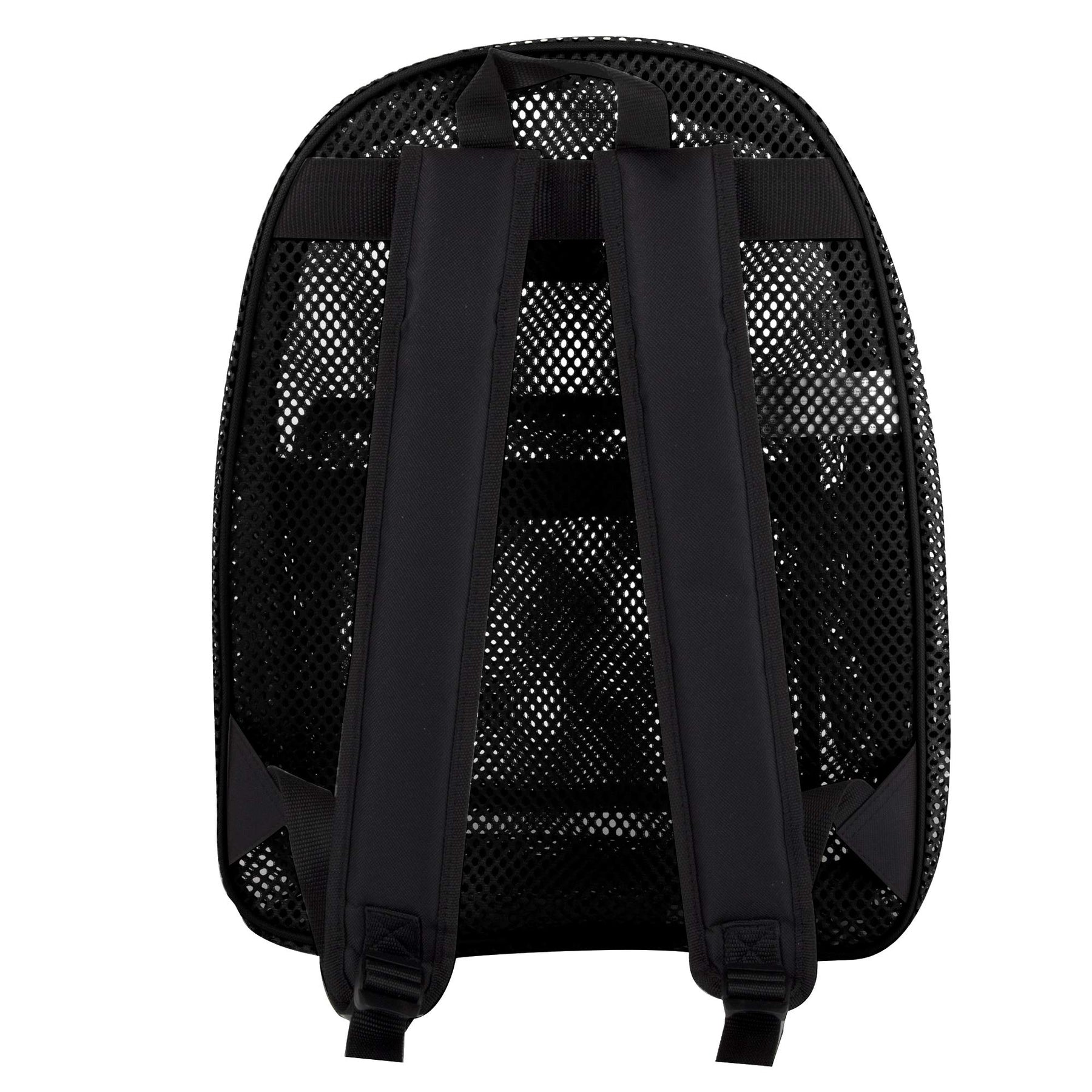 - BLACK MESH BACKPACK: For women, men, girls & boys is crafted of lightweight & breathable netted material that’s also durable. Take to the beach & never worry about sand (it falls out) or wet swimsuits/trunks (they’ll air dry!) Also ideal for schools that require transparent backpacks. Strong stitching holds those textbooks with ease, & fun color lets you show off your personality