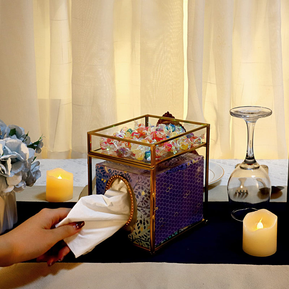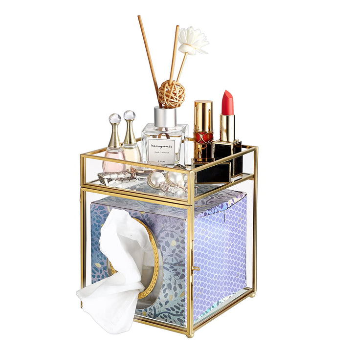 The metal frame is carefully finished with beautiful gold color, clear glass design allows you to see all sides of your tissue.