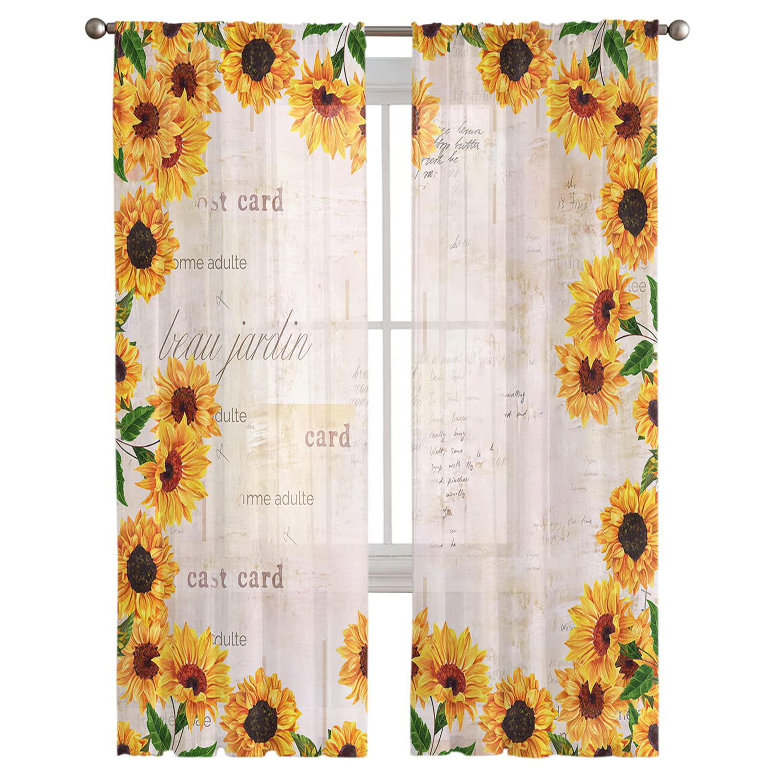 - Original Panels – Sunflower Sheer Curtains 63 Inch Length 2 Panels Set, Yellow Floral Rustic Paper Farmhouse Curtains Semi Transparent Voile Rod Pocket Curtains for Living Dining Room Bedroom Drapes Decorations by AMZRicher