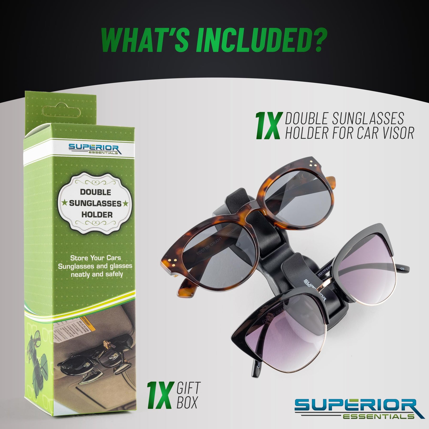 - : Do you have a family member or close friend who is obsessed with glasses or car accessories Superior Essentials sunvisor sunglasses holders are a cool gift for glasses lovers. Our double-end clip-on mechanism makes it one of the best gifts to consider for your loved ones. If you have any queries about our car visor sunglasses holder, feel free to contact us, and we’d be glad to provide immediate support.