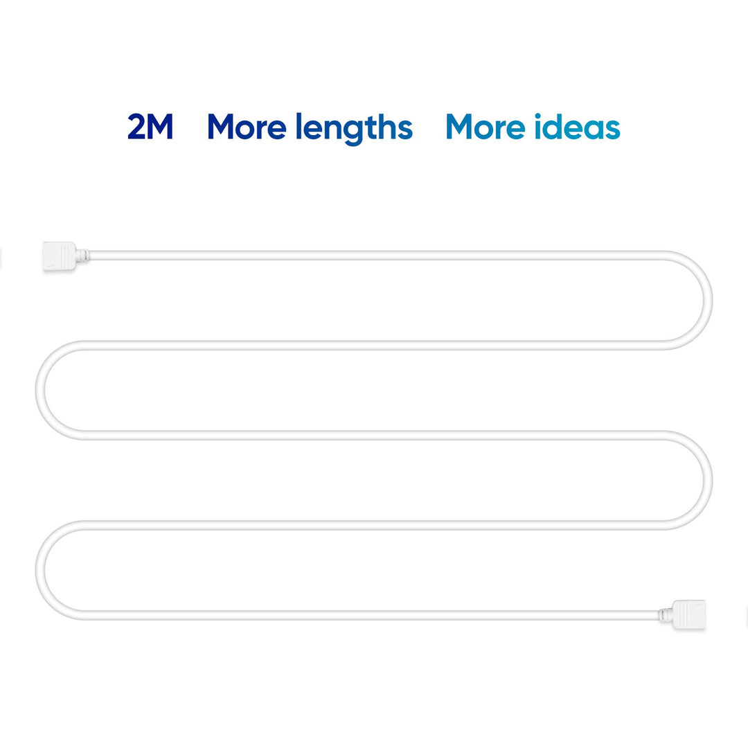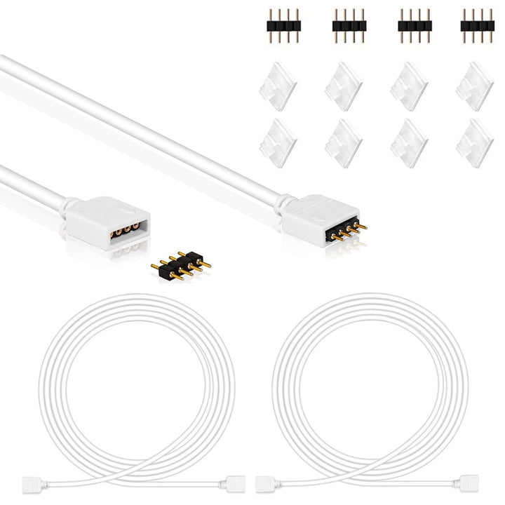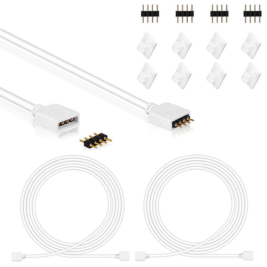 - What You Get: 2 packs 2M/6.5ft RGB Extension Cables, 4 pcs 4 male pin connectors, 8 pcs self-adhesive Cable clips, 30 days money back guarantee plus friendly customer service.