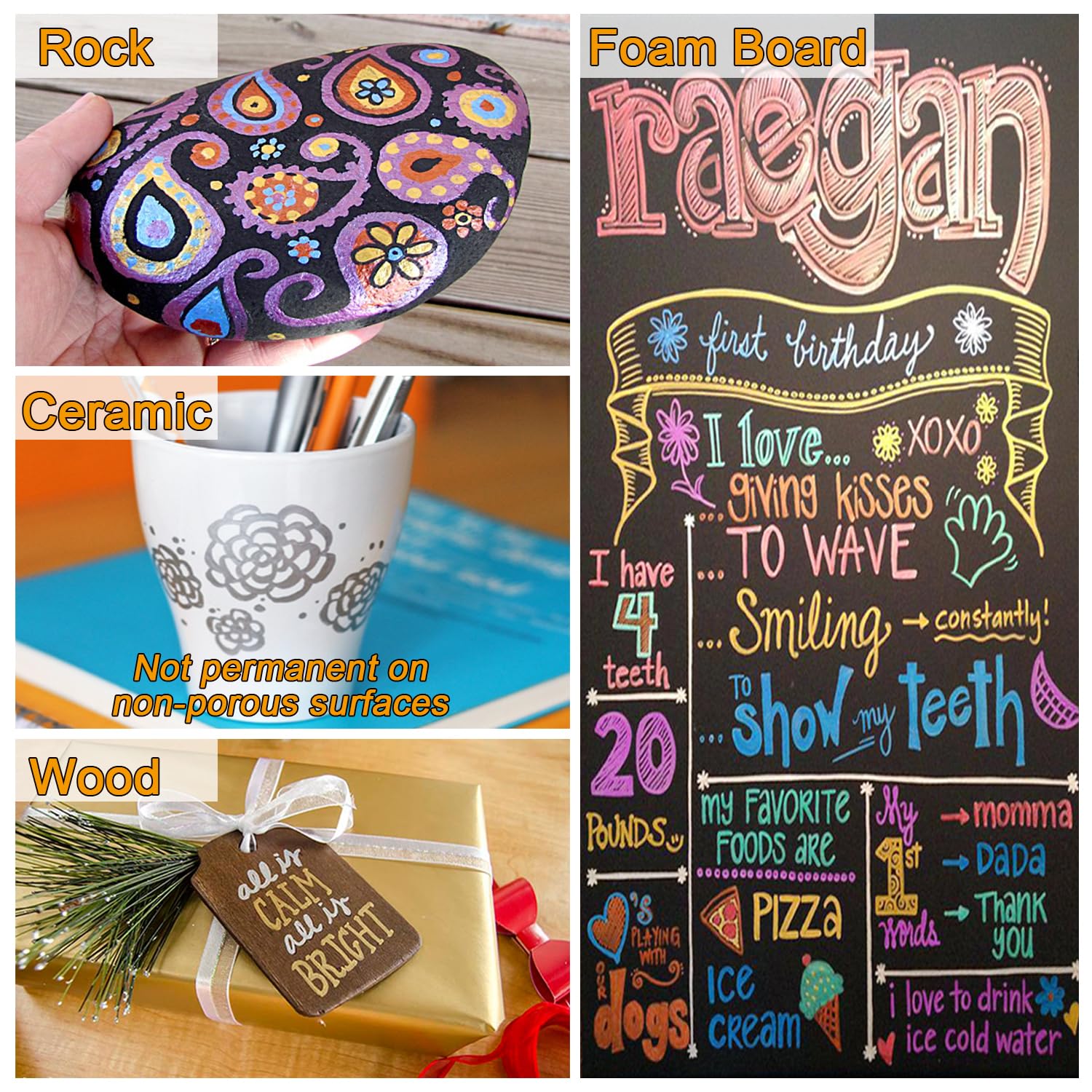 - Marks on Most Surfaces - Pen-type metallic marker pens for black paper, scrapbook, journaling, card, cardstock, cardboard, chalkboard, wood, plastic, DIY projects, Easter eggs decorating, Halloween pumpkins, rock painting, and more