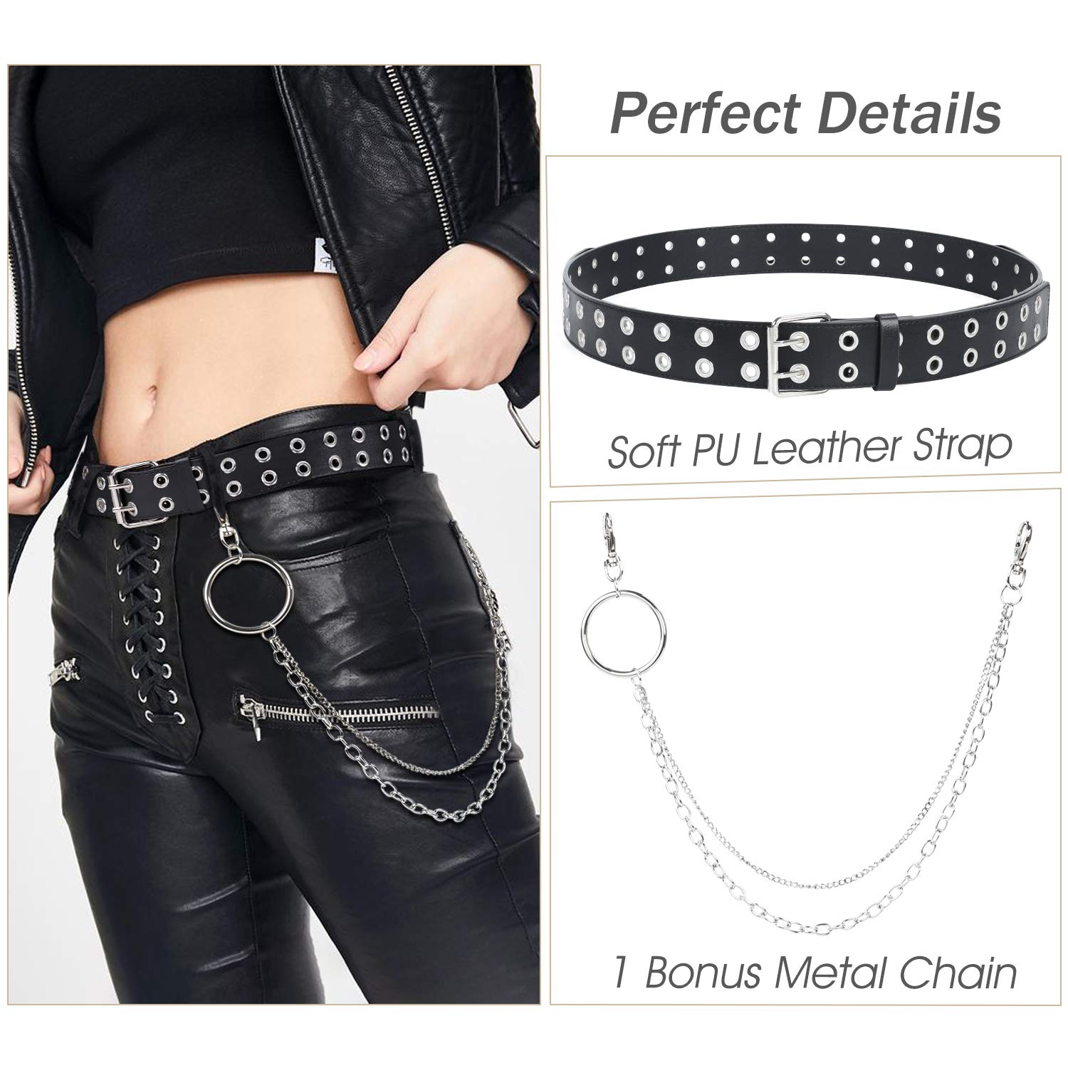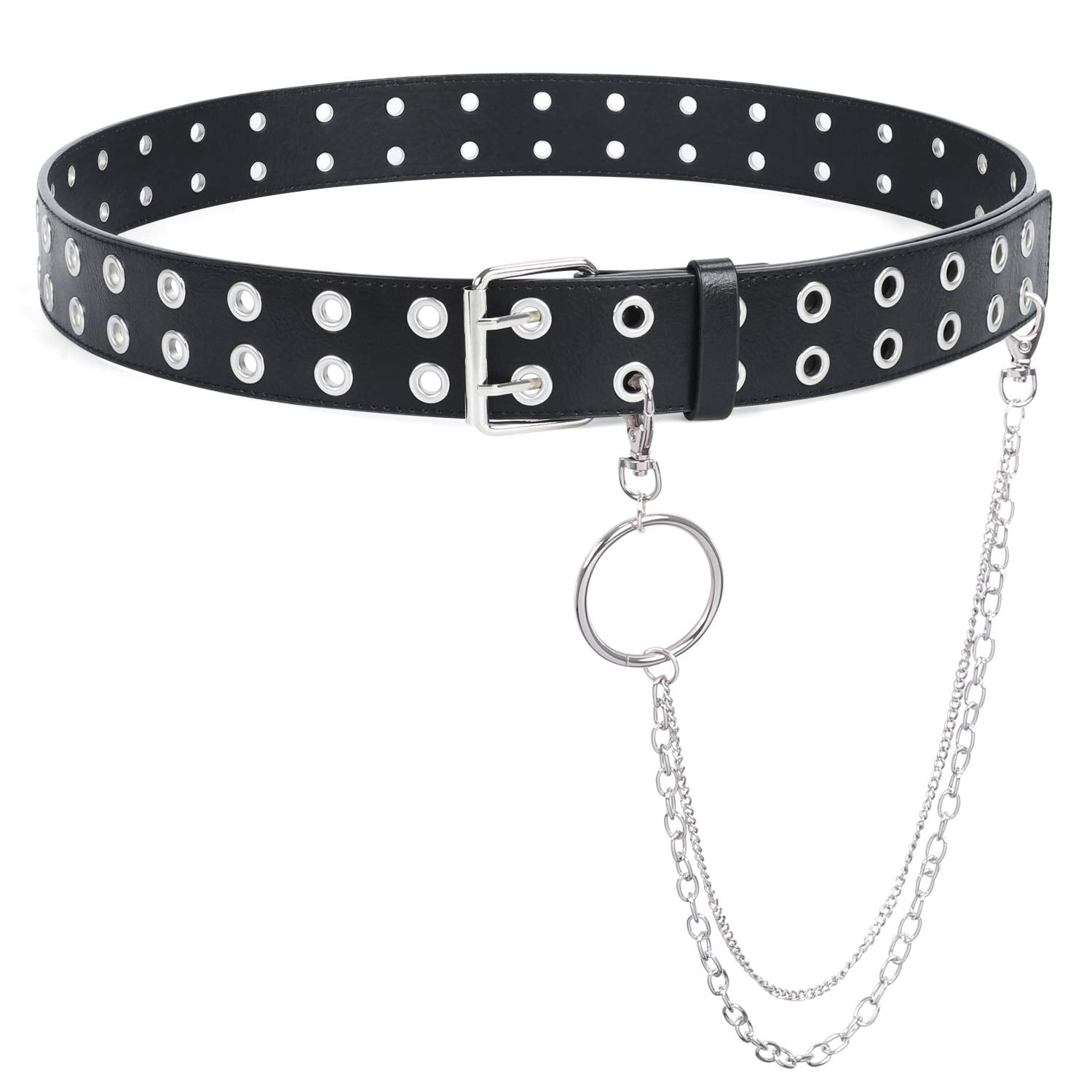 - Original Belts – Double Grommet Leather Belt with Detachable Chain for Women Men,Punk Black Belt with Double Studded Holes for Jeans by SUOSDEY