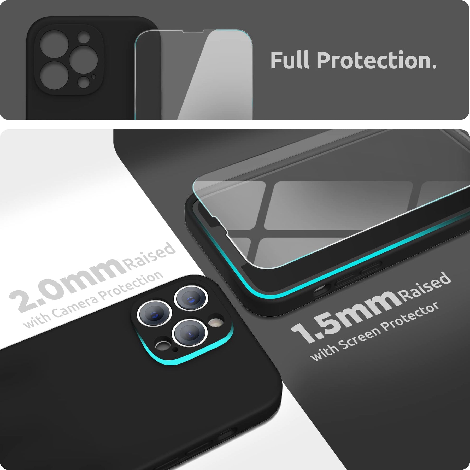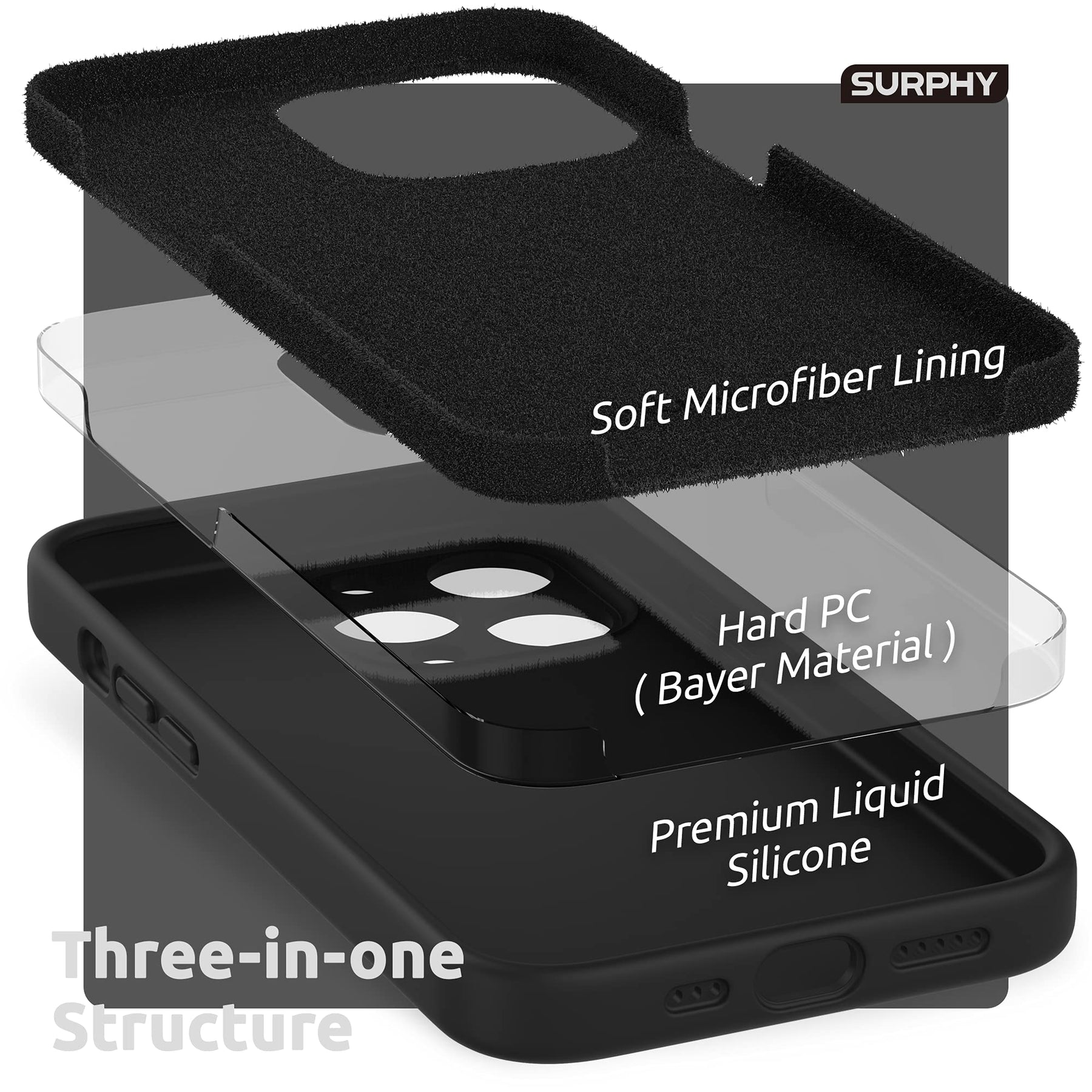 - Original Basic Cases – Compatible with iPhone 13 Pro Case with Screen Protector, (Camera Protection + Soft Microfiber Lining) Liquid Silicone Phone Case 6.1 inch 2021, Black by SURPHY