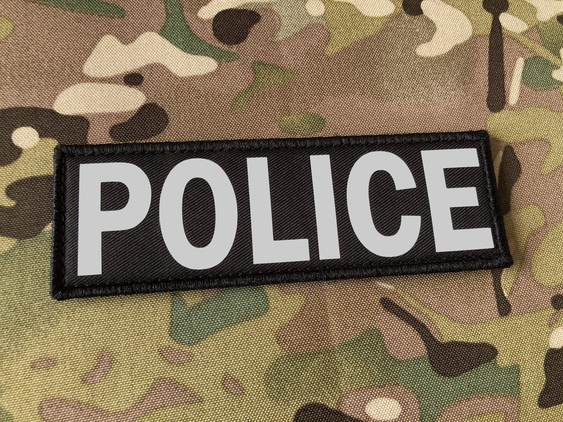 - Original Embroidered Appliqué – Police Patch with Hook and Loop (Gray-Reflective, 8.5x3 inch) by SUVIYA