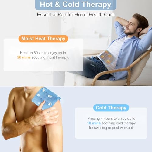 - Cold & Hot Compress: Microwave this weighted heating pad safely for 90 secs to enjoy up to 20 mins moist heat therapy. And the linen side provides excellent 10mins soothing coldness to reduce swelling, inflammation and aches due to strains and sprains by chilling it in freezer for 4 hours.
