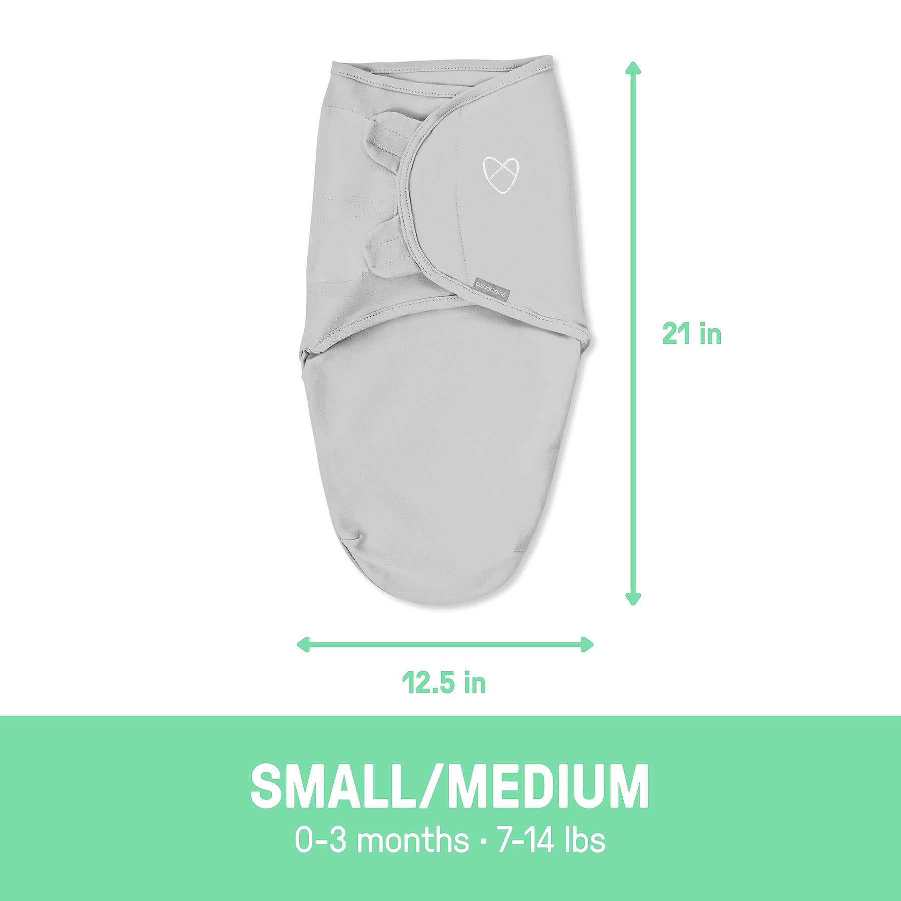 - Keep your baby calm and comforted with the SwaddleMe by Ingenuity Original Swaddle in small/medium. This swaddle fits babies ages 0-3 months, 7-14 pounds, and up to 26 inches long