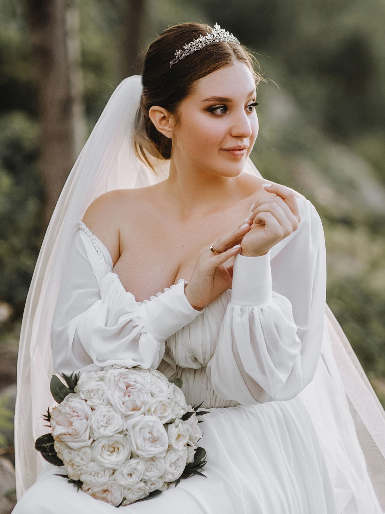 Ends with two loops that allow you to fasten it in your hair with bobby pins. There is no worry while you dancing at your big day!