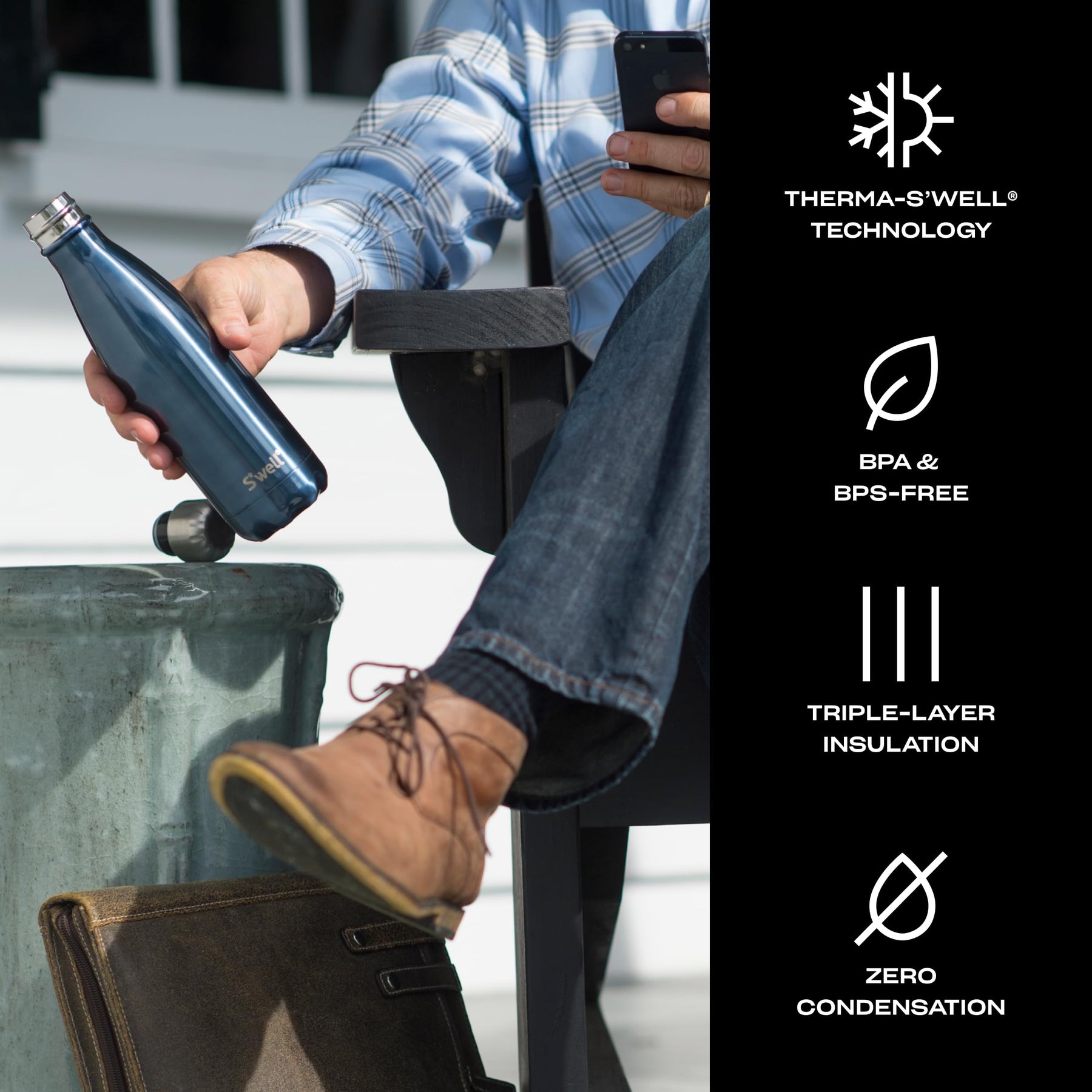 - TRIPLE-LAYERED INSULATION: S’well 17oz Bottle with stainless steel. Triple-layered, vacuum-insulated construction. Exclusive Therma-S’well Technology keeps beverages cold for 36 hours and hot for 18. Sleek and beautifully crafted. Hand-wash only.