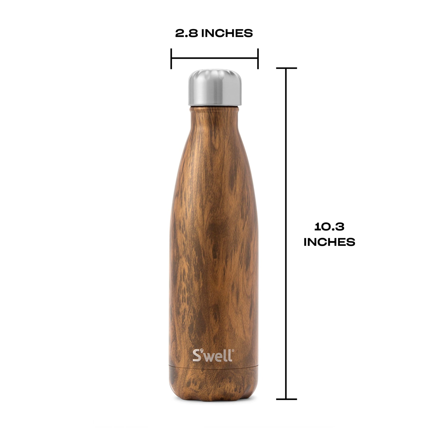 - Original Sports Water Bottles – S'well Stainless Steel Water Bottle, 17oz, Teakwood, Triple Layered Vacuum Insulated Containers Keeps Drinks Cold for 36 Hours and Hot for 18, BPA Free, Perfect for On the Go by S'well