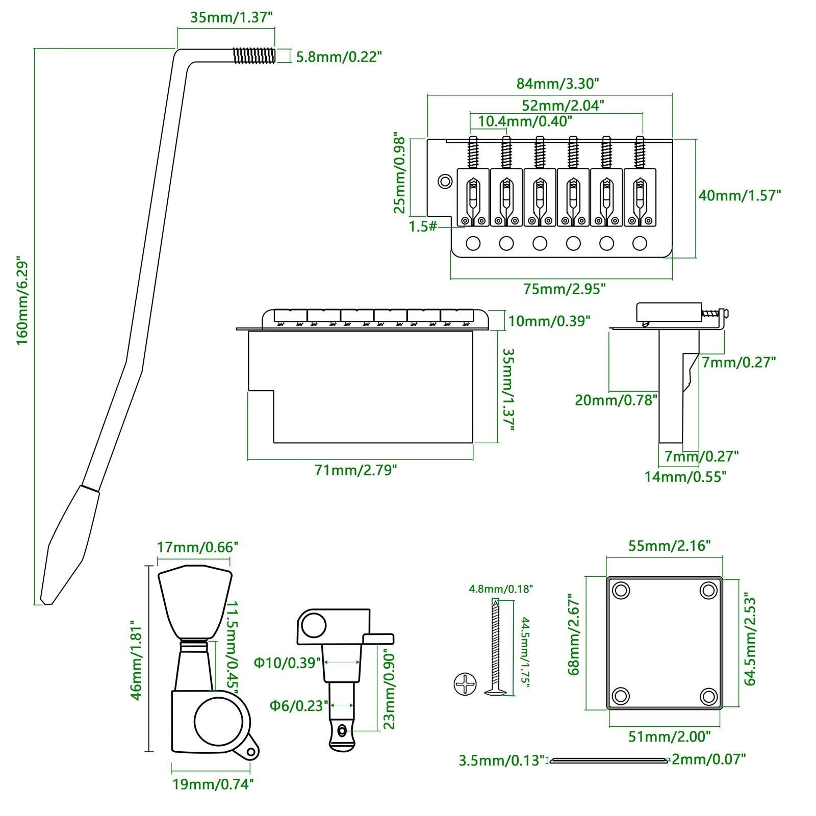 - Check The Size: Neck joint plate size approx(L x W): 64.5 mm* 51 mm (2.53 in*2 in ); Protect plate size: approx(L x W): 68 mm*55 mm (2.67 in*2.16 in ); Screw mounting hole distance: 50 mm* 37 mm (1.97 in*1.46in); String Spacing: 10.4mm