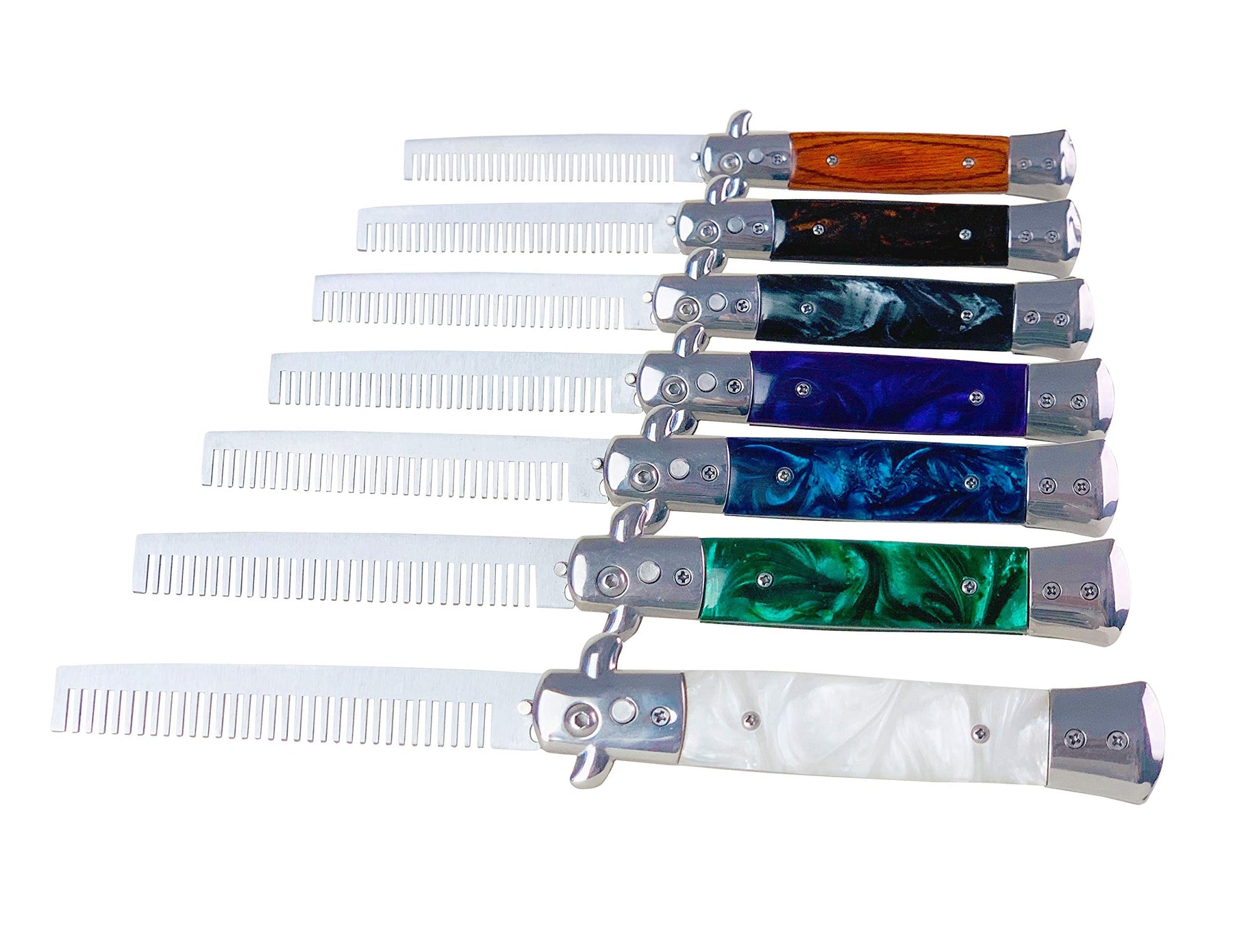 - Original Hair Combs – Pocket Knife Hair Brush Automatic Push Button Folding Barber (Wood Grain) by Switchblade Comb