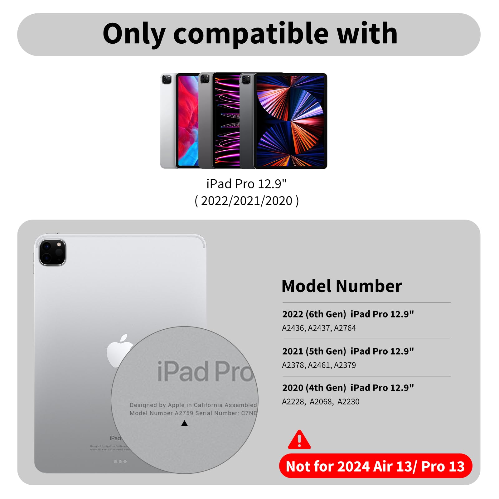 - [Compatibility] Compatible with the latest iPad Pro 12.9 2021-2022 (5-6th Generation). iPad Pencil, Smart Keyboard & screen protector are not included. (Size: 11.22*8.46*0.35 inch/ 107 g)