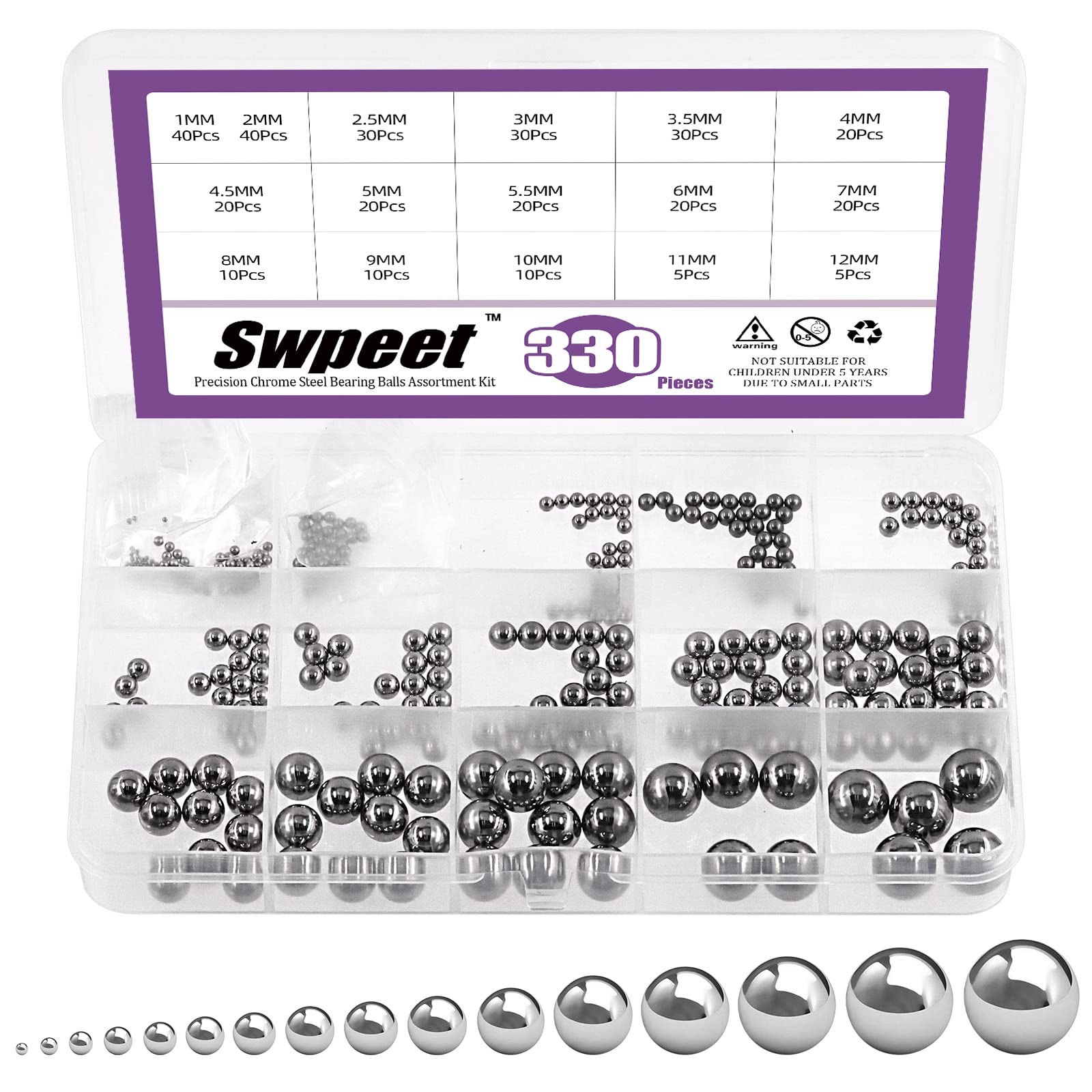 - Original Deep-Groove Ball Bearings – 330Pcs 16 Size 1mm 2mm 2.5mm 3mm 3.5mm 4mm 4.5mm 5mm 5.5mm 6mm 7mm 8mm 9mm 10mm 11mm 12mm Metric Steel Loose Bicycle Bearing Steel Ball Precision Balls Assortment Kit for Bicycles Casters by Swpeet