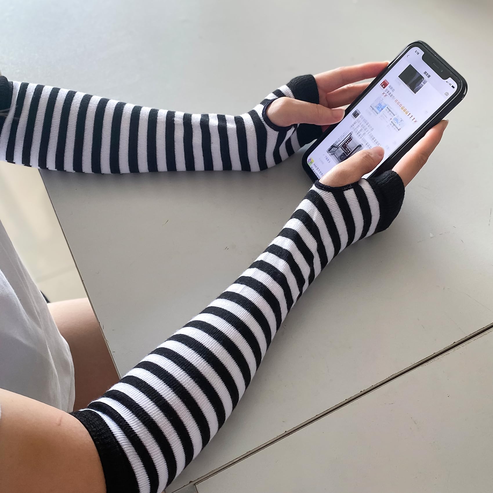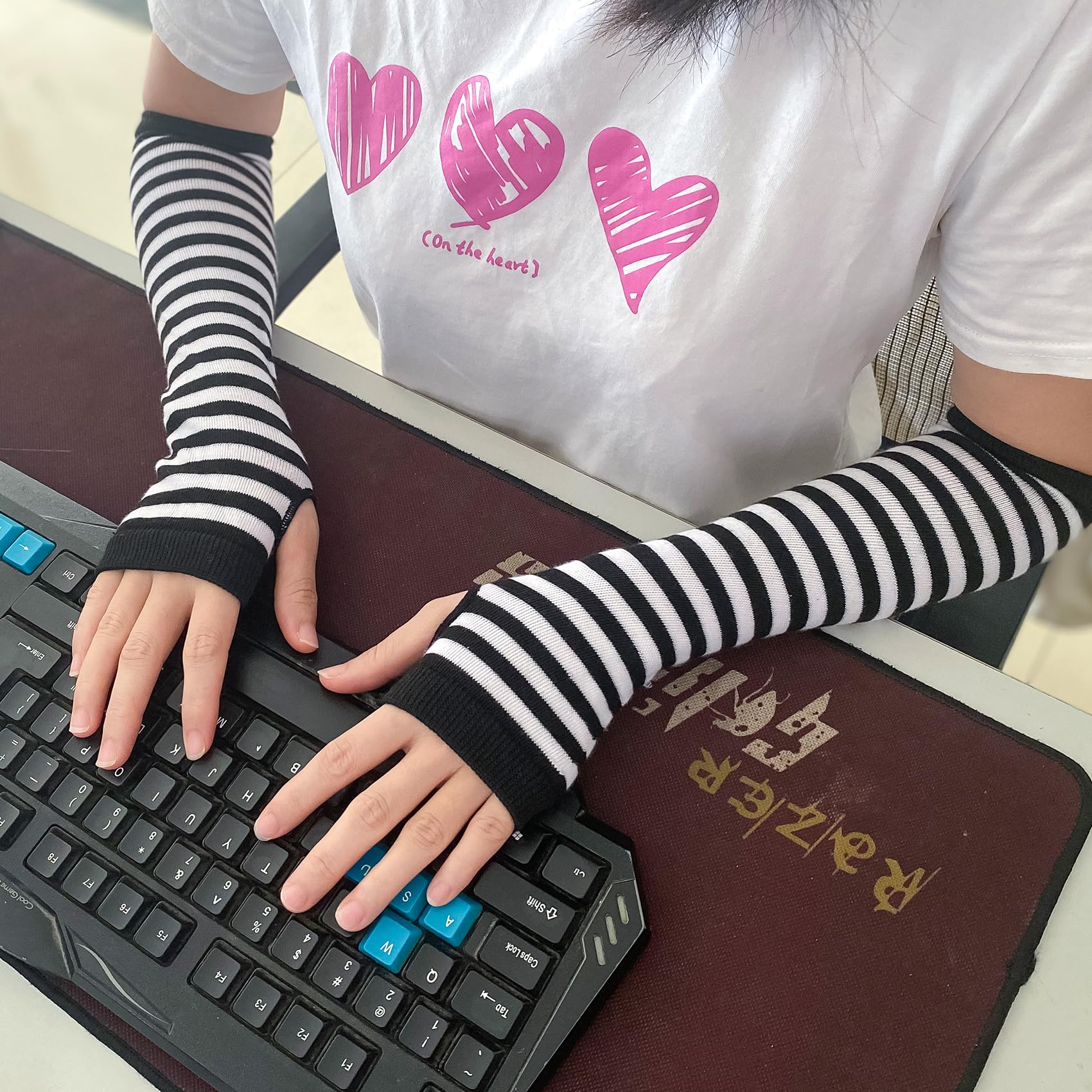 - --- The package contains 6 pairs of long fingerless striped gloves, available in 6 colors(White with Black Striped , Orange with Black Striped , Red with White Striped , Pure Black, Pure Gray,Pure Red ). Enough options for your daily wear and matching. Help you create a charming look.