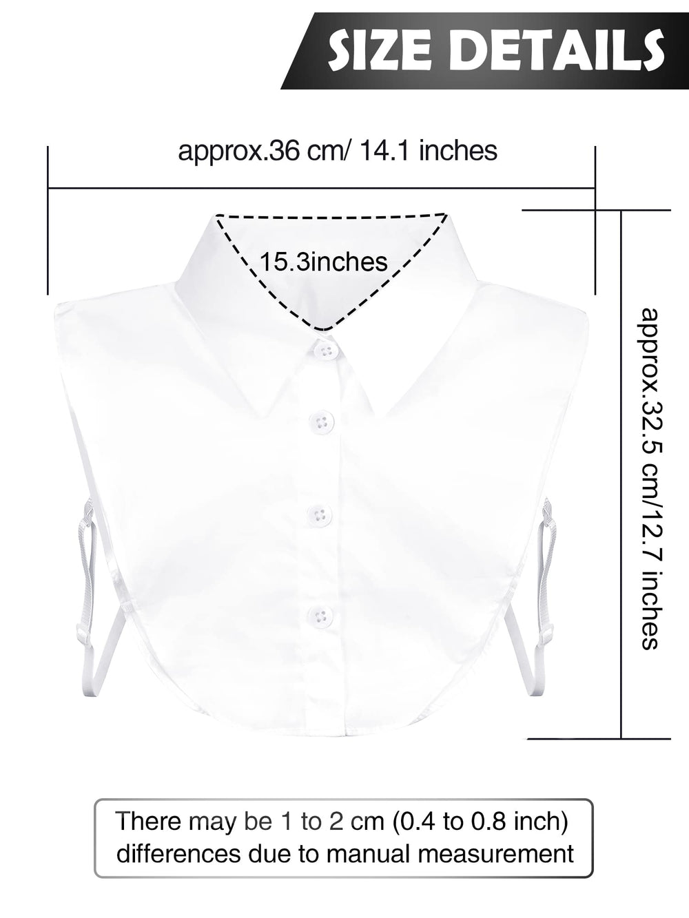 - Proper Size: the half shirt false collars come in one size, the proper size suitable for the most delicate women, there are elastic bands on both sides of the collar to adjust and fix it; You can easily tighten or loosen it according to your needs, making it comfortable and fit without worrying about falling off or untidy after a long time wearing