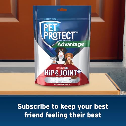 - There is a newer model of this item: From the makers of the Advantage products you know and love, Pet Protect Vet-Formulated Hip & Joint+ Supplement for Dogs 120 Chews features Synovi G4, a formula developed by veterinarians that has been sold in vet clinics to support joint function and flexibility, hip and joint cartilage, normal muscle recovery, and joint lubrication.