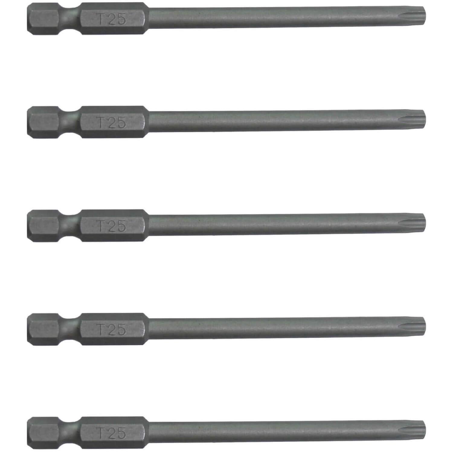 - T25 (T-25) Torx/Star Drive Bit 3.5 Long. Torx Bit Size Engraved on Driver Bit. 5 PACK
