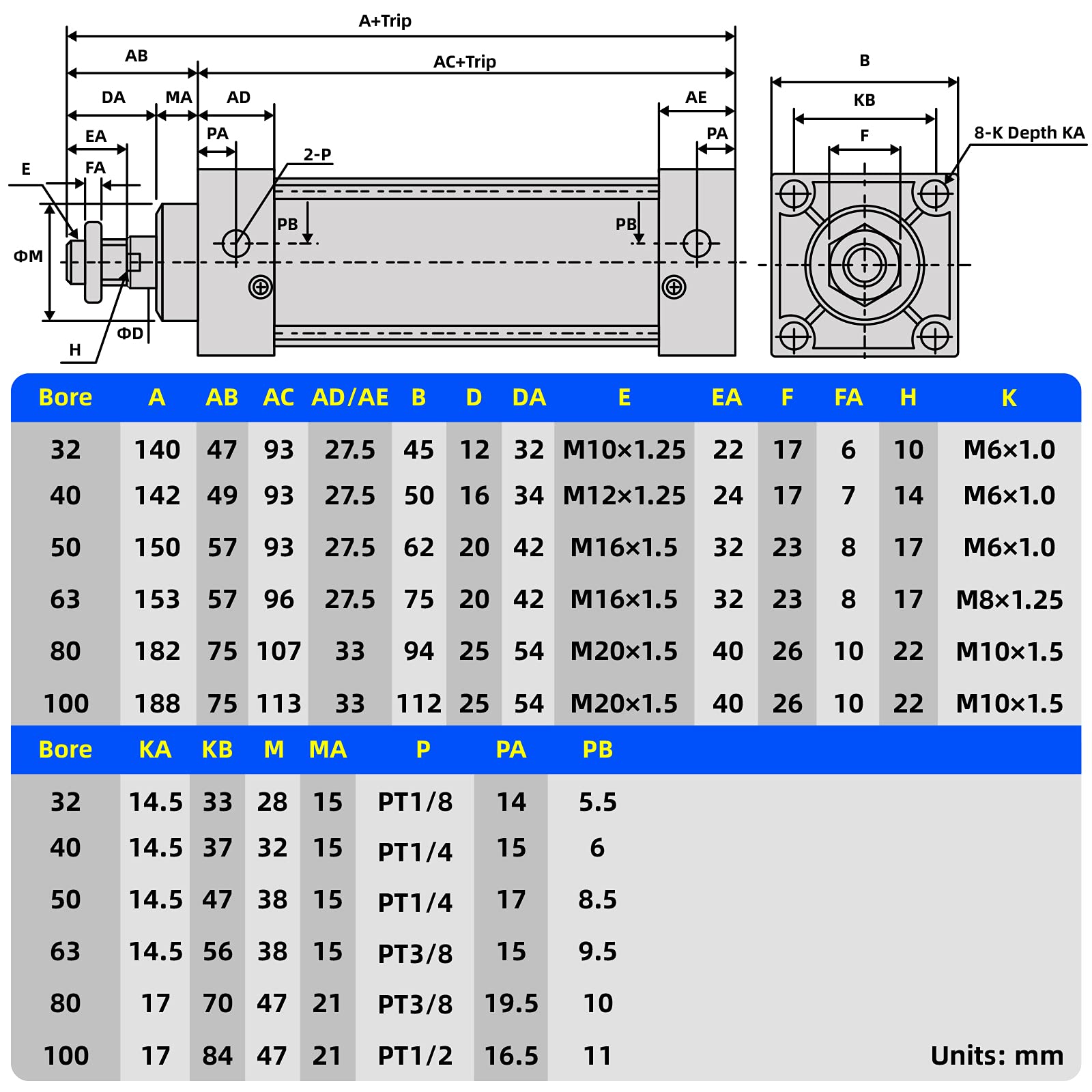 - Port Size PT1/4, Bore 1 1/2 (40mm), Stroke1(25mm).