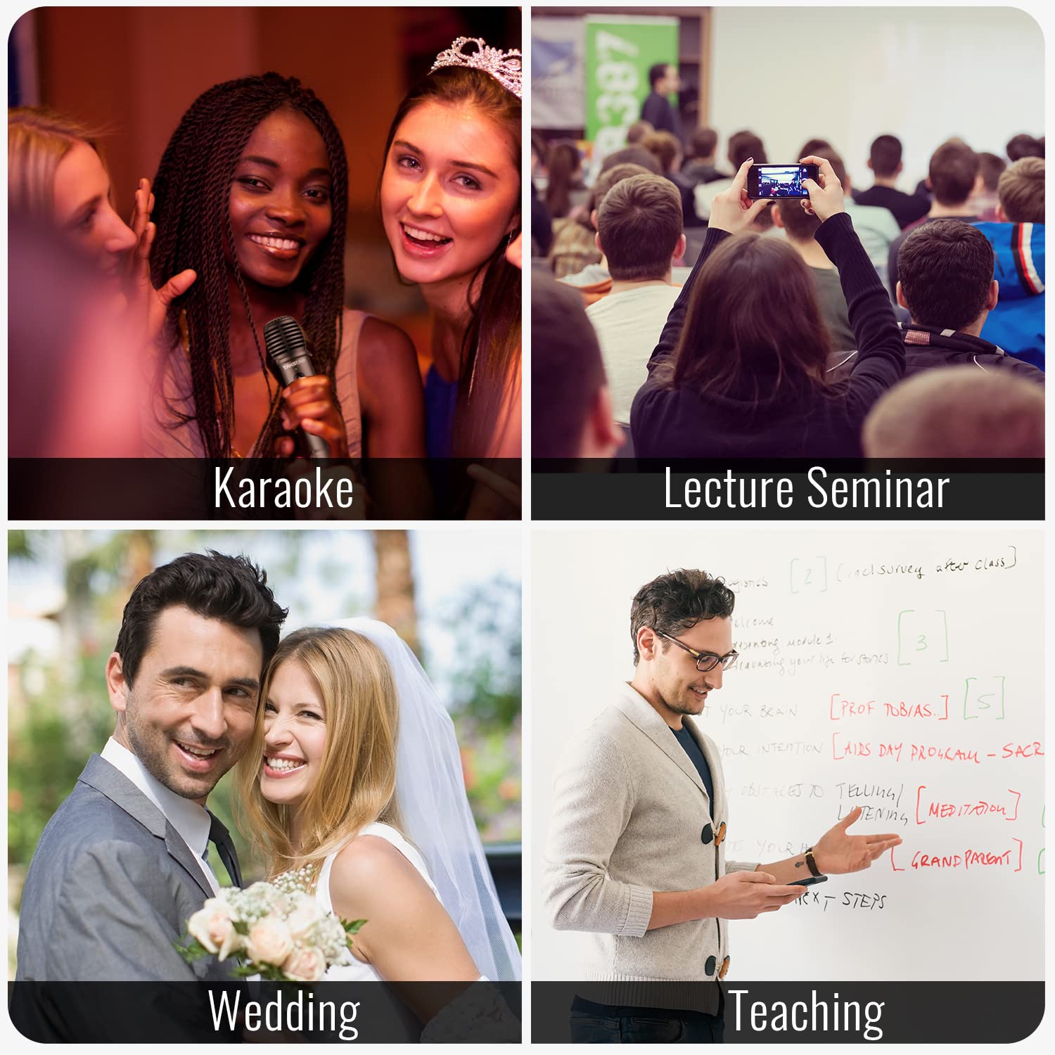 - Professional and Best Experience: Built-in DSP chip with the howl rejecting function to reject harsh howl effectively. Made by rear earth material speaker, lightweight, excellent sound, high volume. This 2-in-1 wireless microphone and voice amplifier, the sound can cover about 100m²(about 1000 sq. ft).