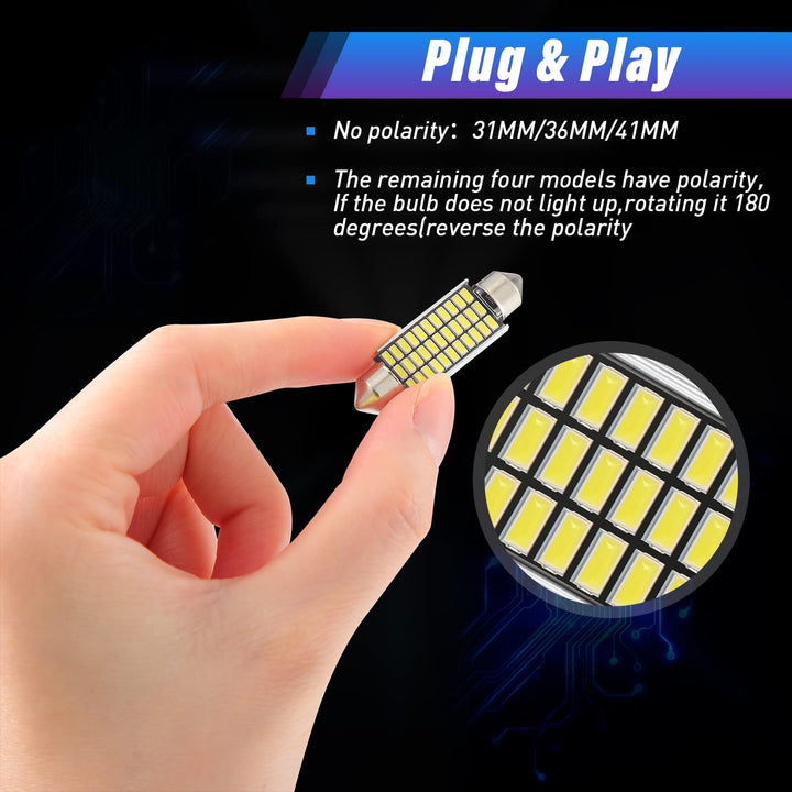 - Convenient to Install: you just need to plug the interior LED lights for cars in the sockets, no other tools needed; It is worth noting that you can turn over the bulbs for 180 degrees if they don't work after installing