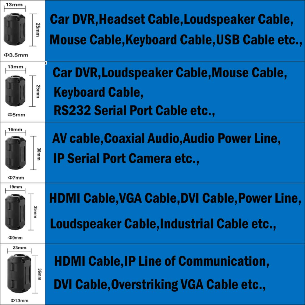 - Original Ferrites – 60 Pieces Clip-on Ferrite Ring Core RFI EMI Noise Suppressor Cable Clip for 3mm/ 5mm/ 7mm/ 9mm/ 13mm Diameter/Video Cable Power Cord (Black) by Tamicy