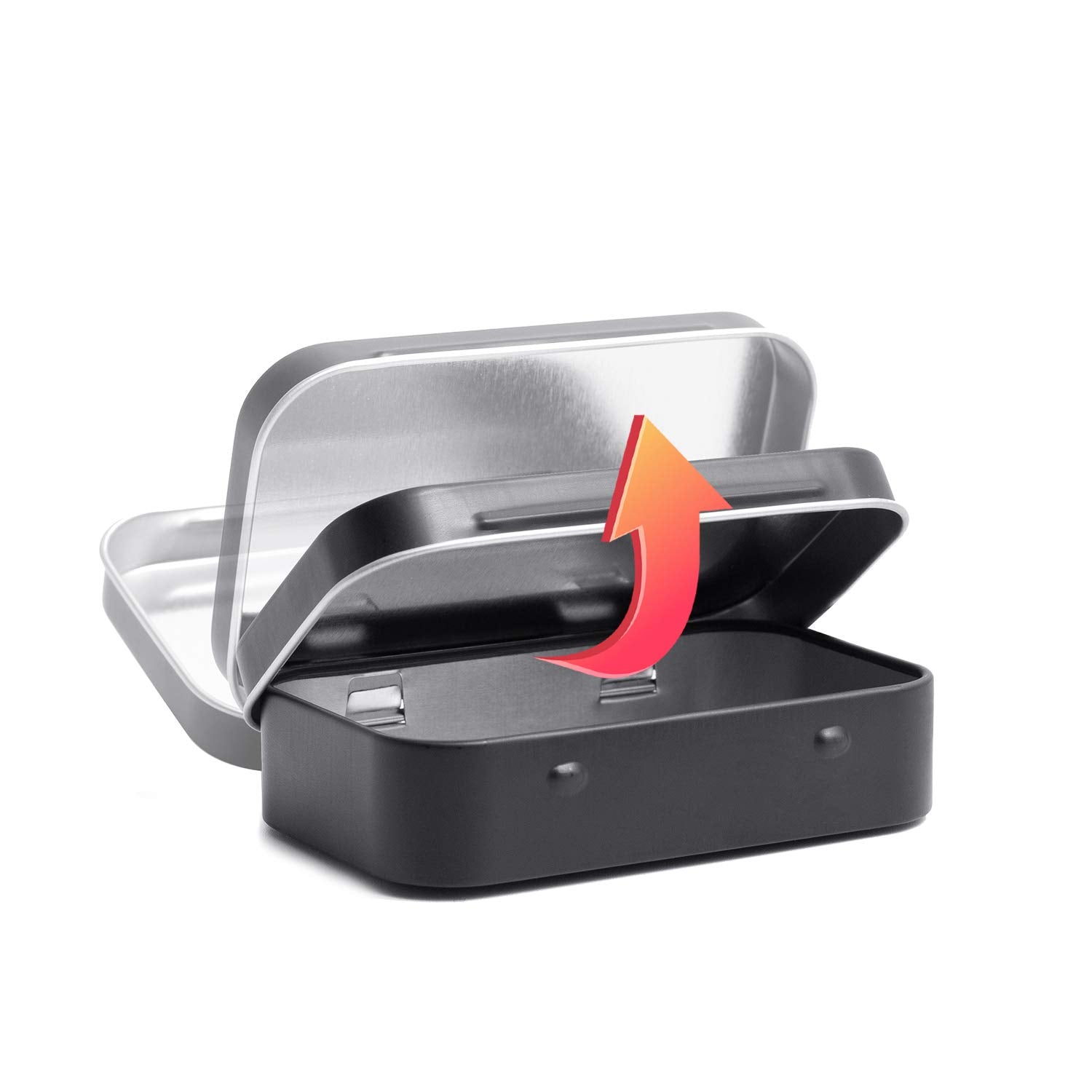 - Rectangular tin size is 3.5 x 2.5 x 0.8 in (L x W x H); Thickness 0.23mm; Good size for secret stashes