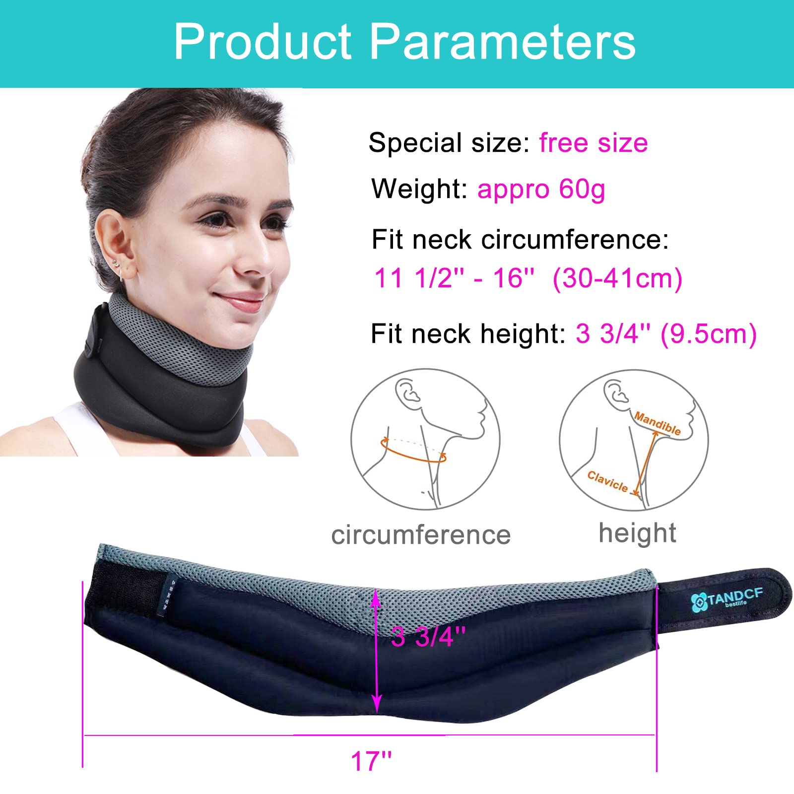 - Neck Pain Relieveproduct size:17.32*4. Max size:21.65''*4.The Cervical collars are rather durable with high elastic to support head and jaw, reduce the pressure on the nerve, correct seating posture, relieve cervical pain, joint pain and body fatigue.That is perfect home traction equipment.
