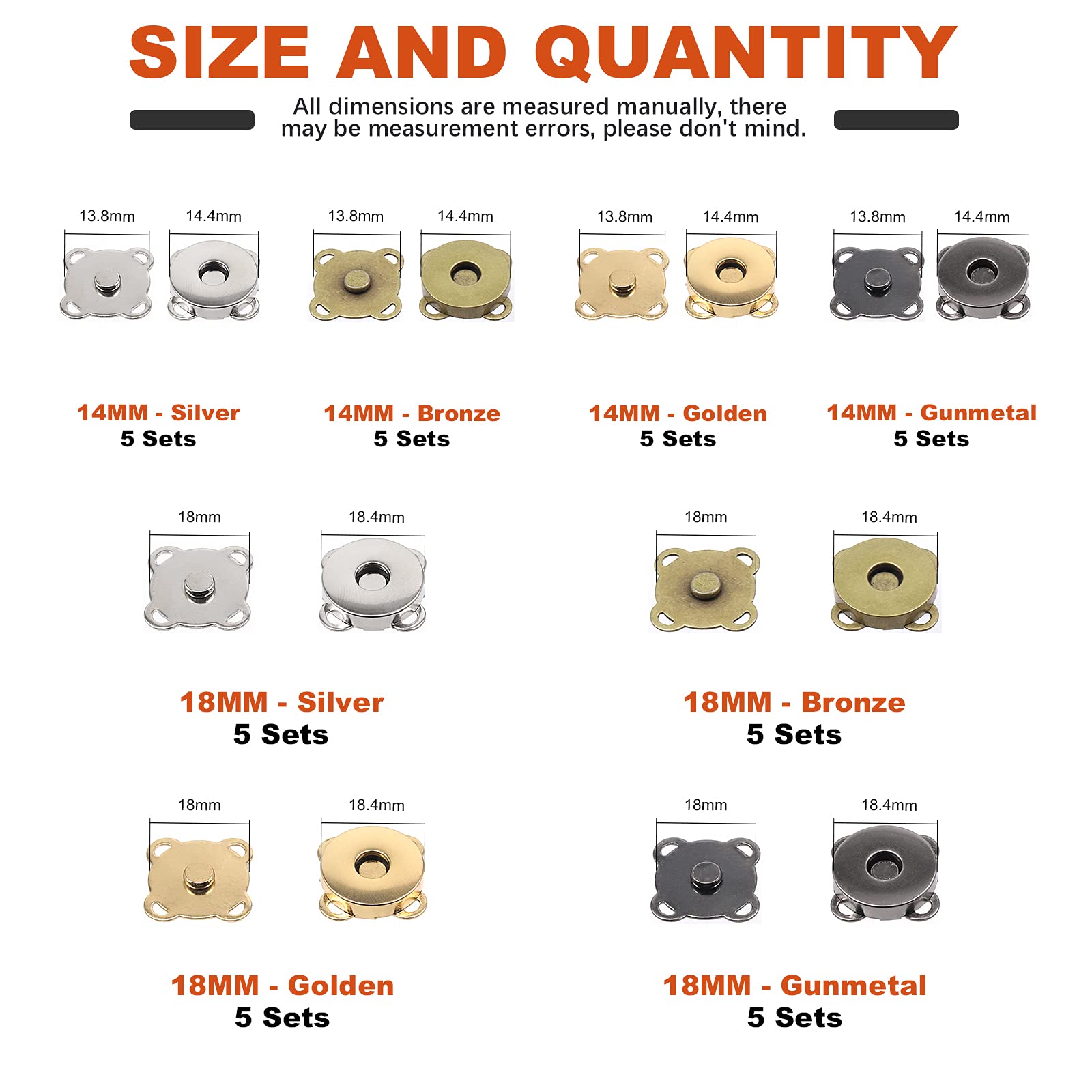 - Original Categories – 40 Sets 4 Color 14MM 18MM Magnetic Button Sewing Clasps Snaps Fasteners, Sew in Magnetic Plum Blossom Bag Button Snaps for Purses Bags Clothes by Tanstic