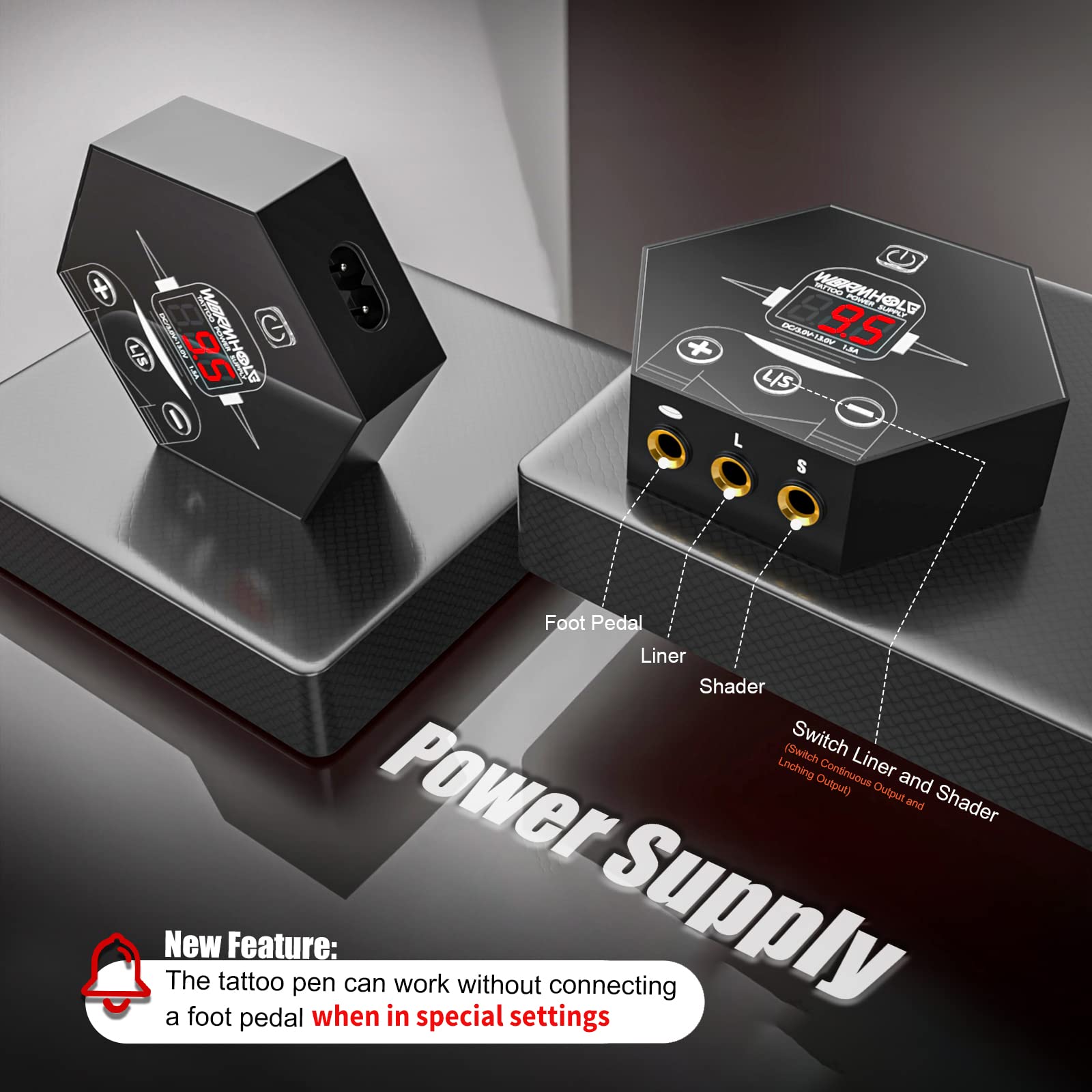 - HIGH-QUALITY POWER SUPPLY: This dual control tattoo power supply has new technology and design, higher quality and more durable. Using the automatic protection function, when your voltage is too high or abnormal, the power will be automatically cut off, which can make your tattoo safer and protect your tattoo tool