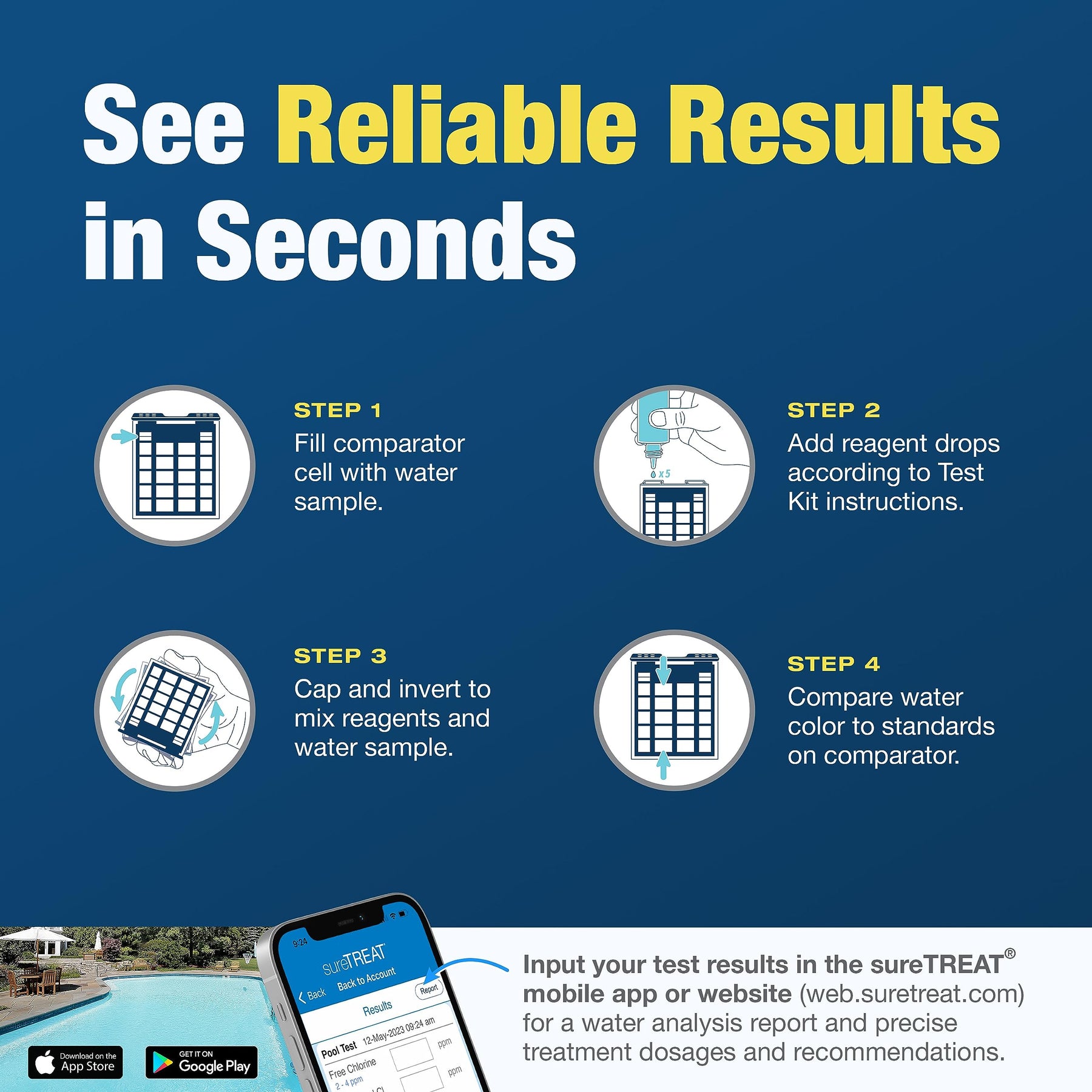 - Quick & Easy to Use – Simply collect your water sample using the comparator and add the appropriate testing reagents to determine the results. Product instructions are written in non-technical language with easy-to-understand pictograms.
