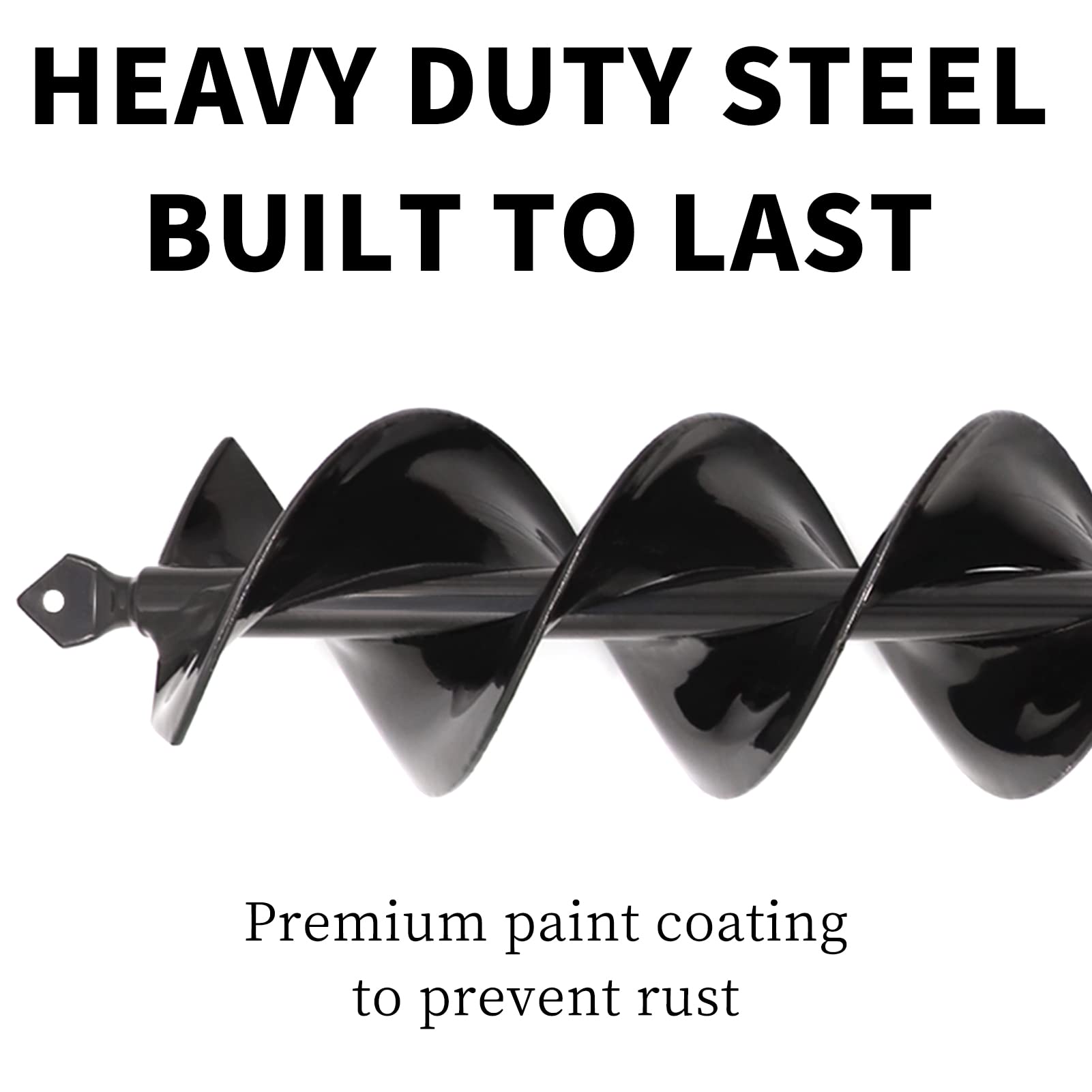 - Build to last: Made of heavy duty alloy steel, with glossy black painted finish. The Upgraded auger drill bit point on it hits the ground first and keeps it steady when you are digging hard grounds. Our patented SOLID BARREL DUAL-BLADES drill bit is the ONLY ONE in market, we makes the distance between the digging blade start and the point is the minimal,and our solid design is also for any kinds of soils, and you will not be afraid of Stones when drilling, so our SOLID auger drill bit will help
