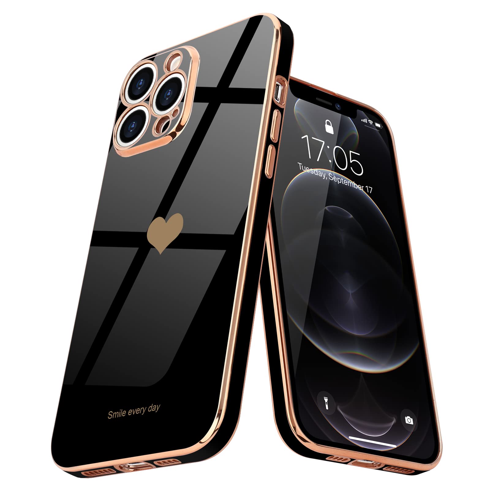 - Original Basic Cases – for iPhone 12 Pro Case for Women Girl Cute Love-Heart Luxury Bling Plating Soft Back Cover Raised Full Camera Protection Bumper Silicone Shockproof Phone Case for iPhone 12 Pro, Black by Teageo