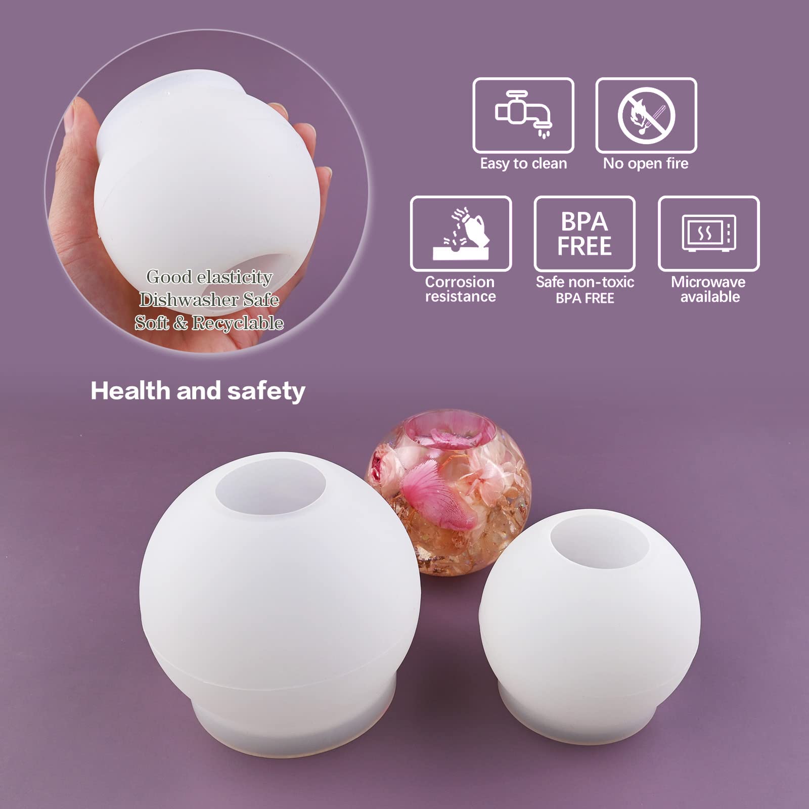 - High Quality Large Sphere Mold For Resin:Resin mold candle holder are made of high quality silicone material,soft and flexible,not eay to tear up.The inner side of the candle holder molds silicone is smooth and glossy.The bottom of the candles holder mold are sturdy and help to hold the orb shape.candle holder molds for tealight suit for 1.57 inch/4 cm size candle.So you can make wonderful finish and round candle holder.