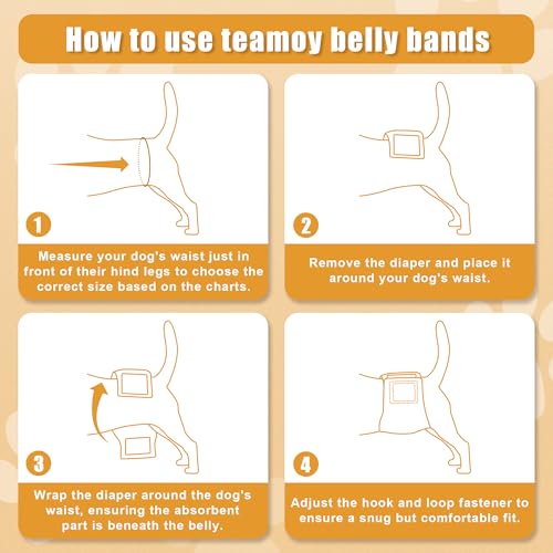 - WIDER MAGIC TAPE CLOSURES: Teamoy belly bands are better than most others on the market. We specially designed a large square MAGIC TAPE to help you adjust the right size to fit your dog best. The Diaper will not slip off no matter how much wriggling and sliding on the floor. Making sure your dog enjoy a fun day at home or outside.