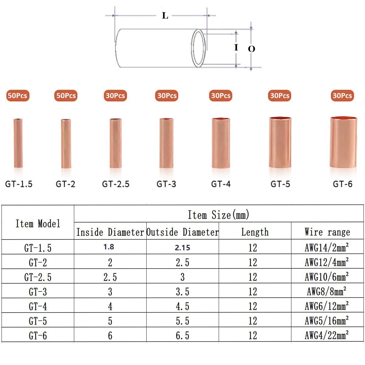 - Original Butt – 250Pcs Wire Ferrules Kit 7 Size Copper Crimp Connector Non Insulated Electrical Butt Terminal Assortment Kit by Teansic