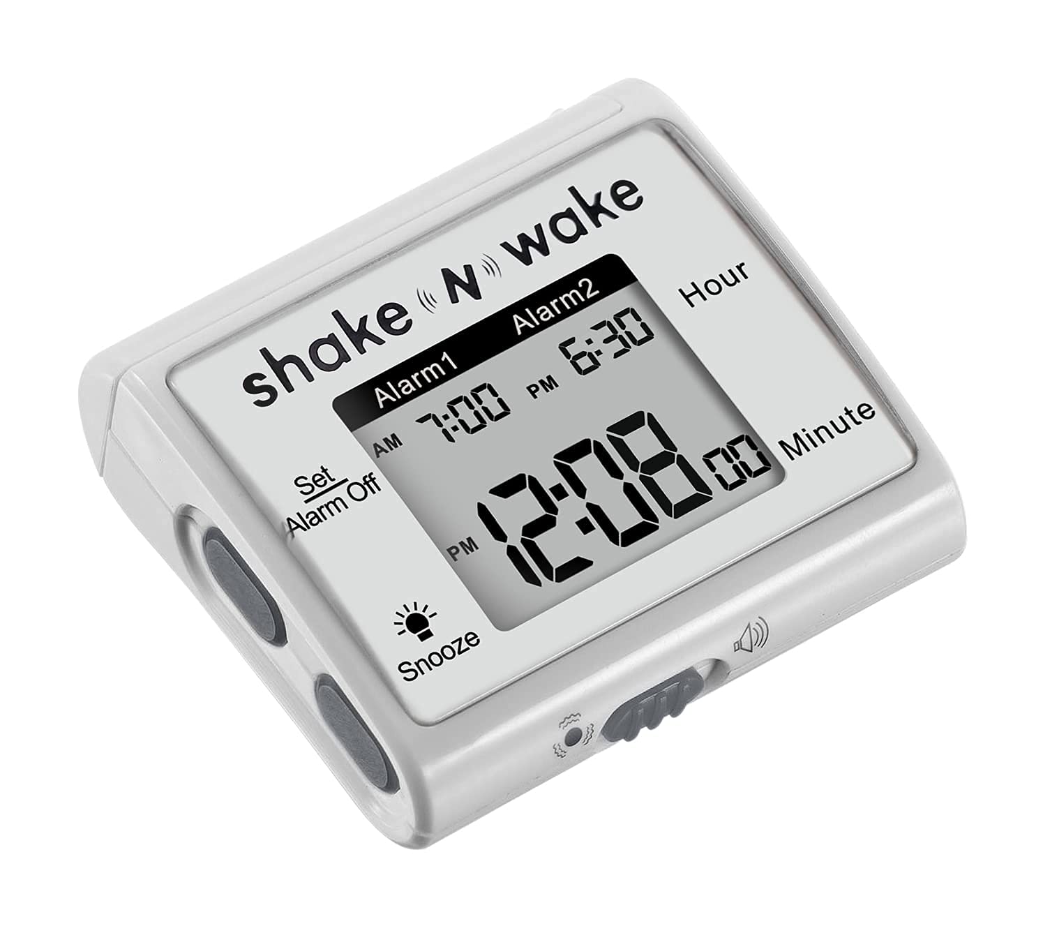 Whether you're looking to wake up without disturbing a partner or are hard of hearing and tired of sleeping through audible alarms, the Shake n Wake Vibrating alarm Clock is there to help. This Shake n Wake is a silent, wearable vibrating alarm watch that will vibrate to rouse you instead of playing any sounds. It is lightweight and comfortable, meaning it won't feel bulky and irritating when you wear it to sleep, and could be used as a travel alarm clock, You can also choose to detach it and place it beneath your pillow.