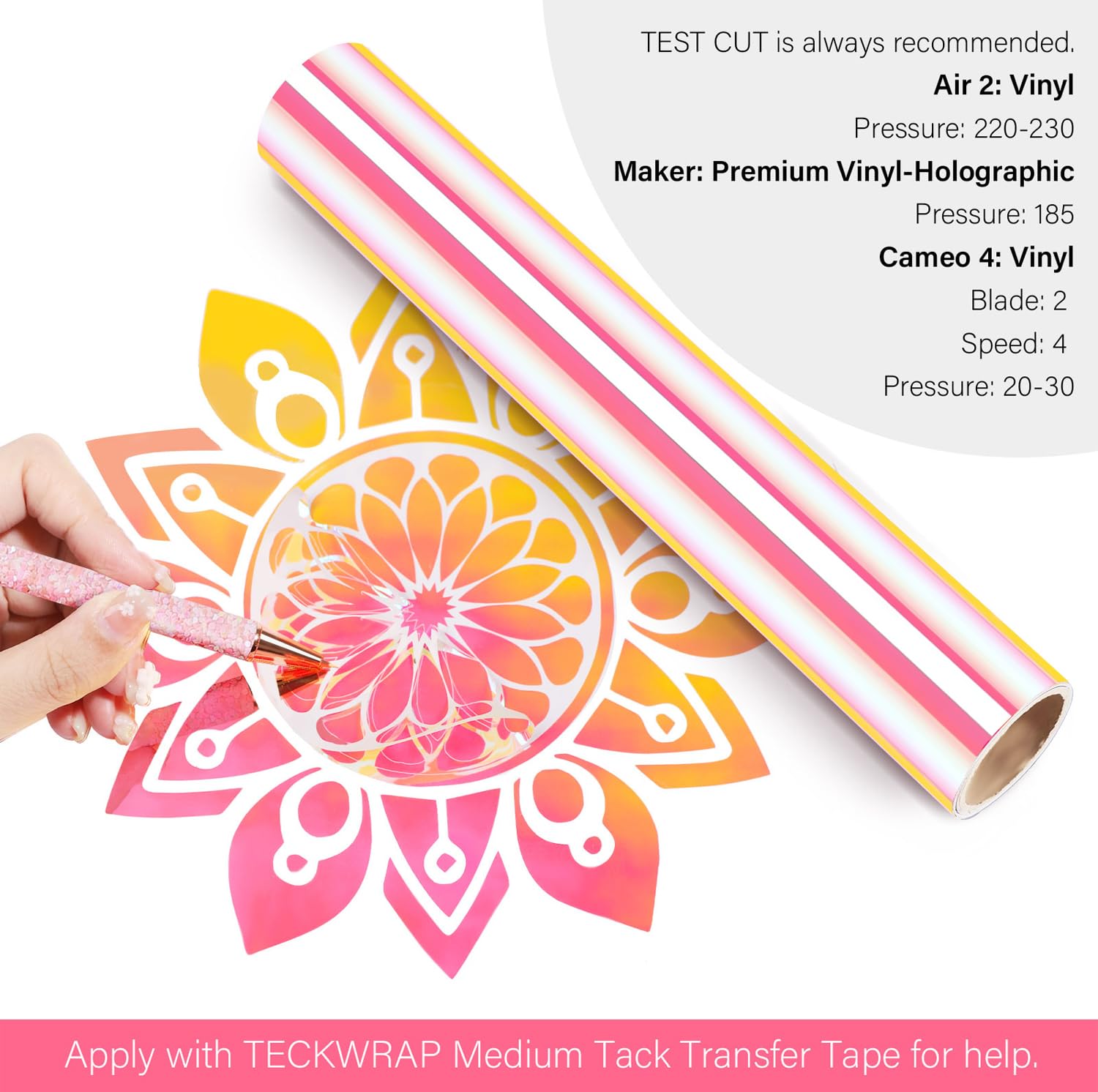 - Original Adhesive Vinyl – Holographic Chrome Craft Vinyl 12 x 60, Peach Yellow - Permanent Adhesive Vinyl, Indoor & Outdoor Vinyl, Waterproof, Scrapbooking, Easy Cut & Weed for DIY Crafts, Party Decor, Car Decals by TECKWRAP