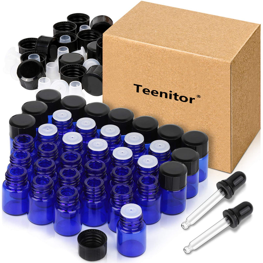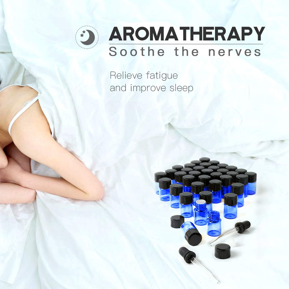 - Original Dropping Bottles – Essential Oils Sample Bottles, 36 Pcs 2 ml (5/8 Dram) Cobalt Blue Oil Bottles For Essential oils, Amber Glass Vials With 2 Free Glass Transfer Eye droppers by Teenitor