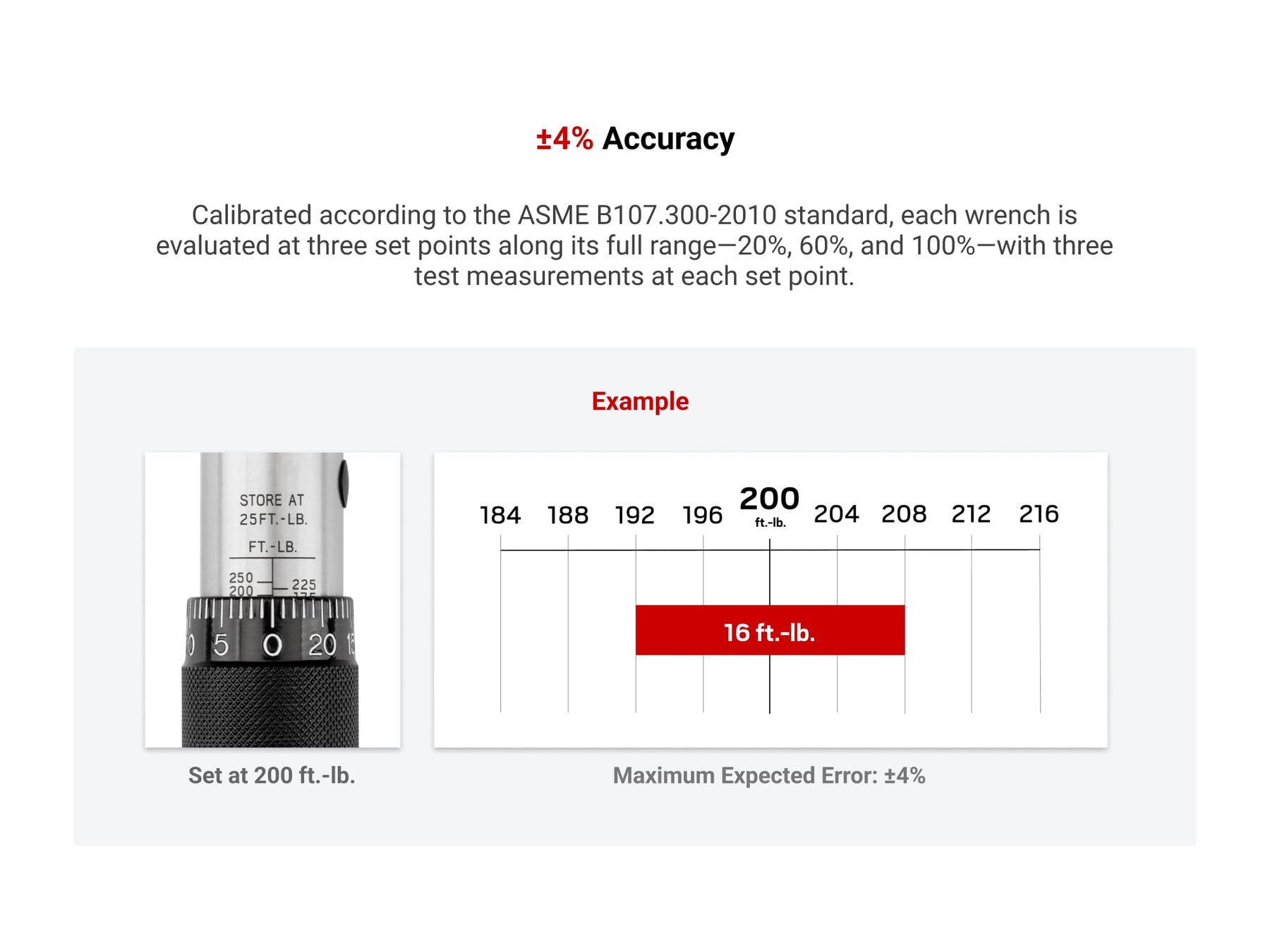- Wrench emits a click that can be heard and felt when the preset value is reached