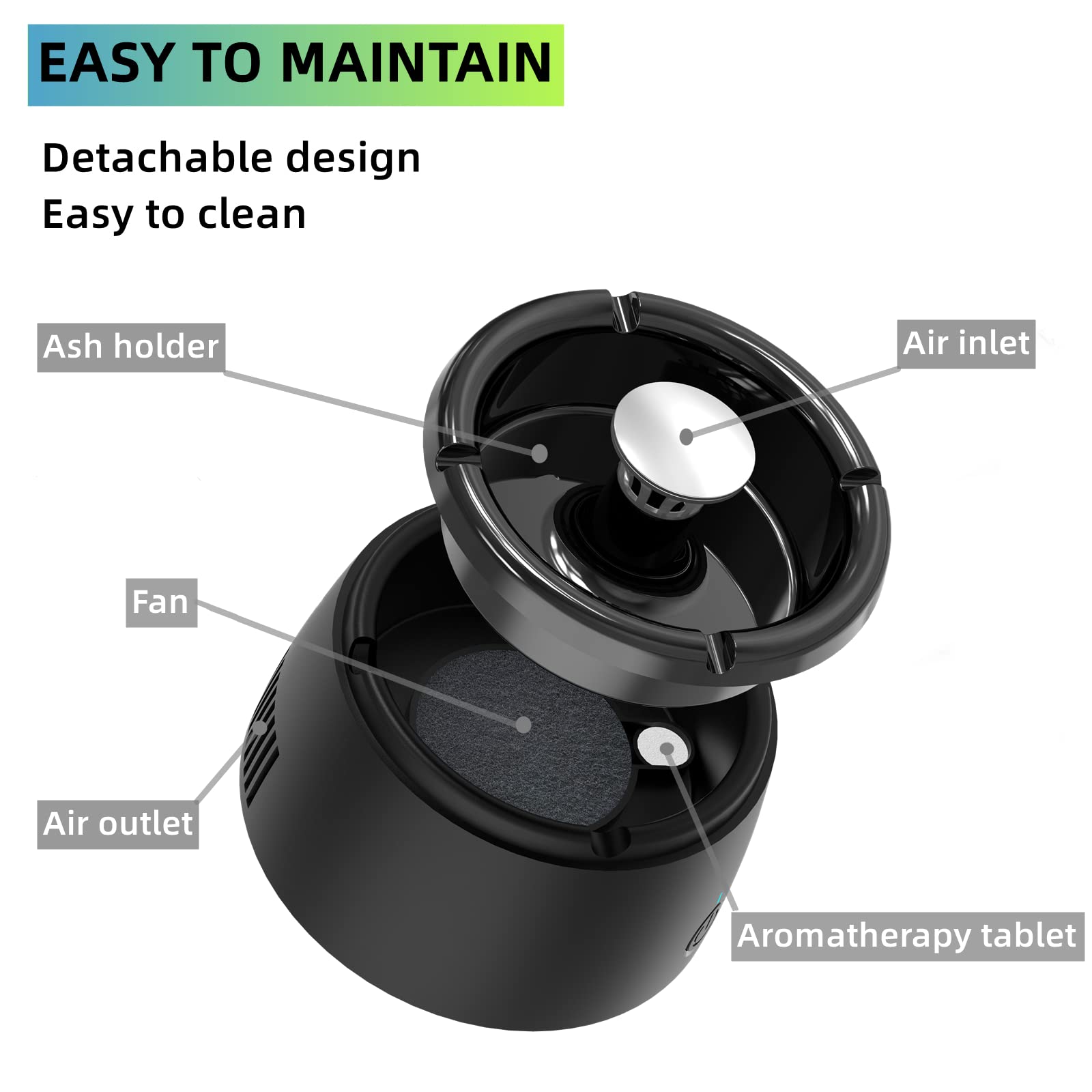 - [Easy to maintain] The ash tray is detachable for easy maintenance and cleaning.