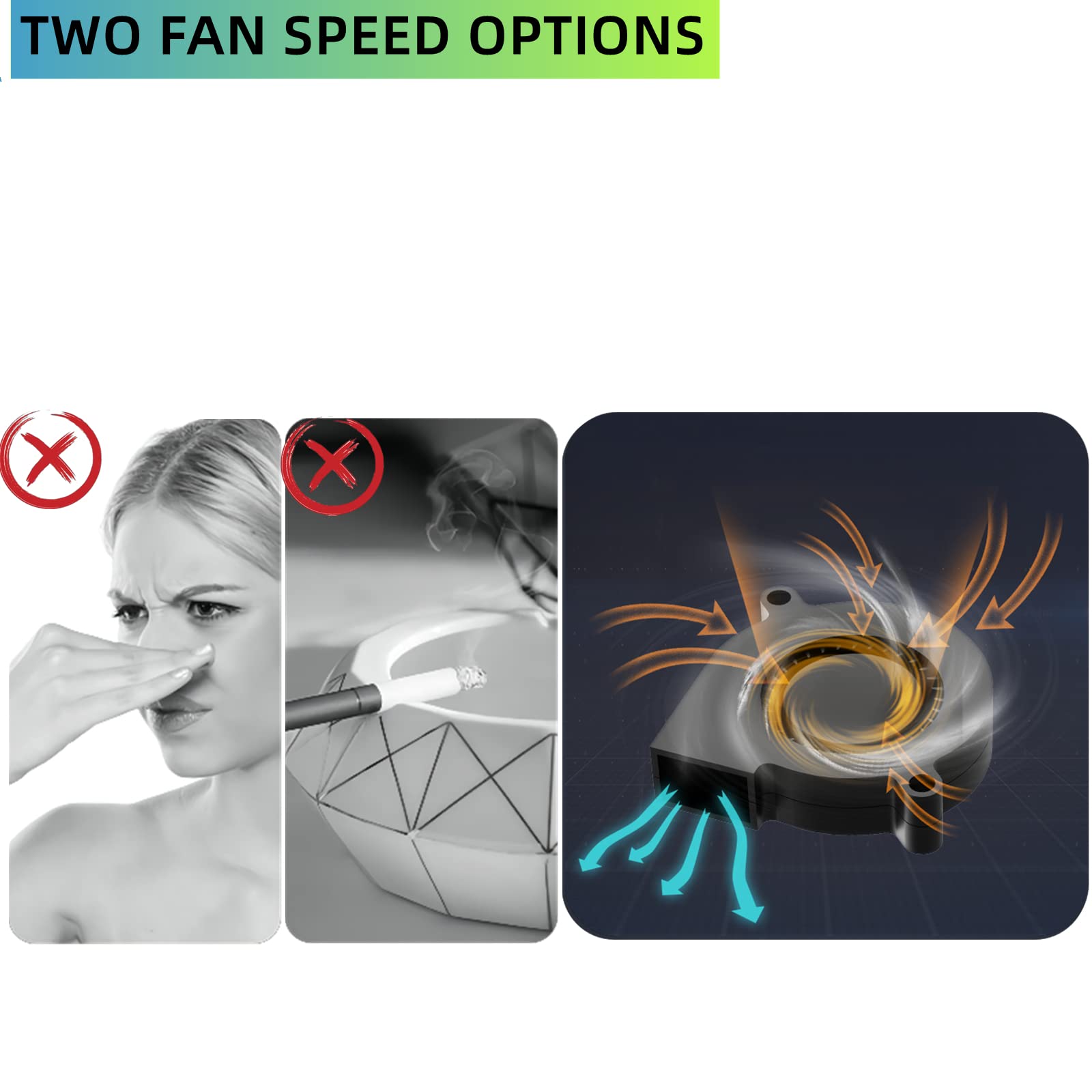 - [Multifunctional] A creative electronic ashtray It includes a suction fan to help draw in smoke and promote desktop air circulation to reduce second-hand smoke.