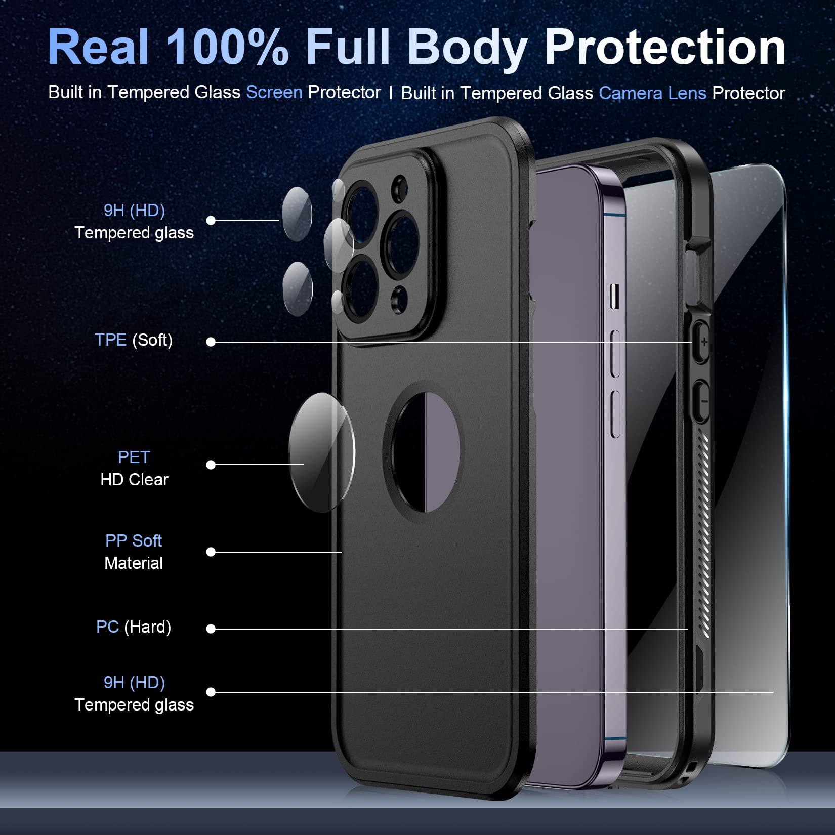 - Original Basic Cases – [Real 360 for iPhone 14 Pro Case Waterproof, Built-in 9H Tempered Glass Camera Lens & Screen Protection [14FT Military Dropproof][Full-Body Shockproof Phone Case][Dustproof][IP68 Underwater] by Temdan